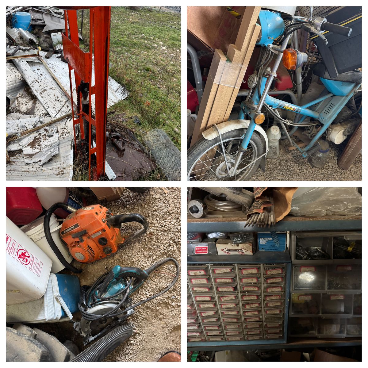 • Riding lawn mowers • Multiple chainsaws • Welders • Shop equipment • Large quantities of firewood