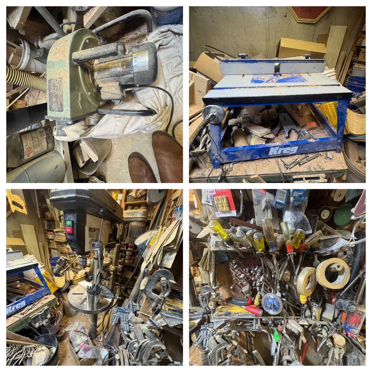 • Sanders of every kind • Planers • Drill press • Chop saws • Woodworking tools • Tons of hand tools • Toolboxes and shop gear