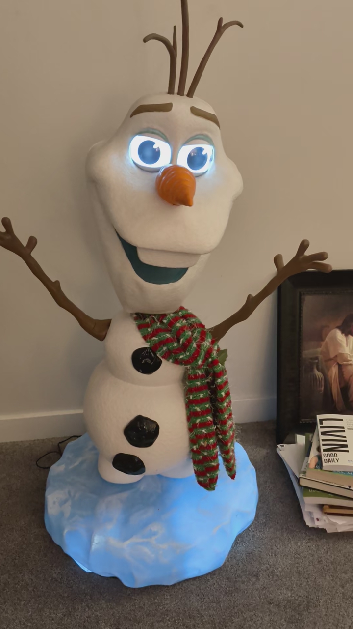 Olaf animatronic. Says 3 or 4 different sayings. Brand-new just bought at Christmas time at home Depot.