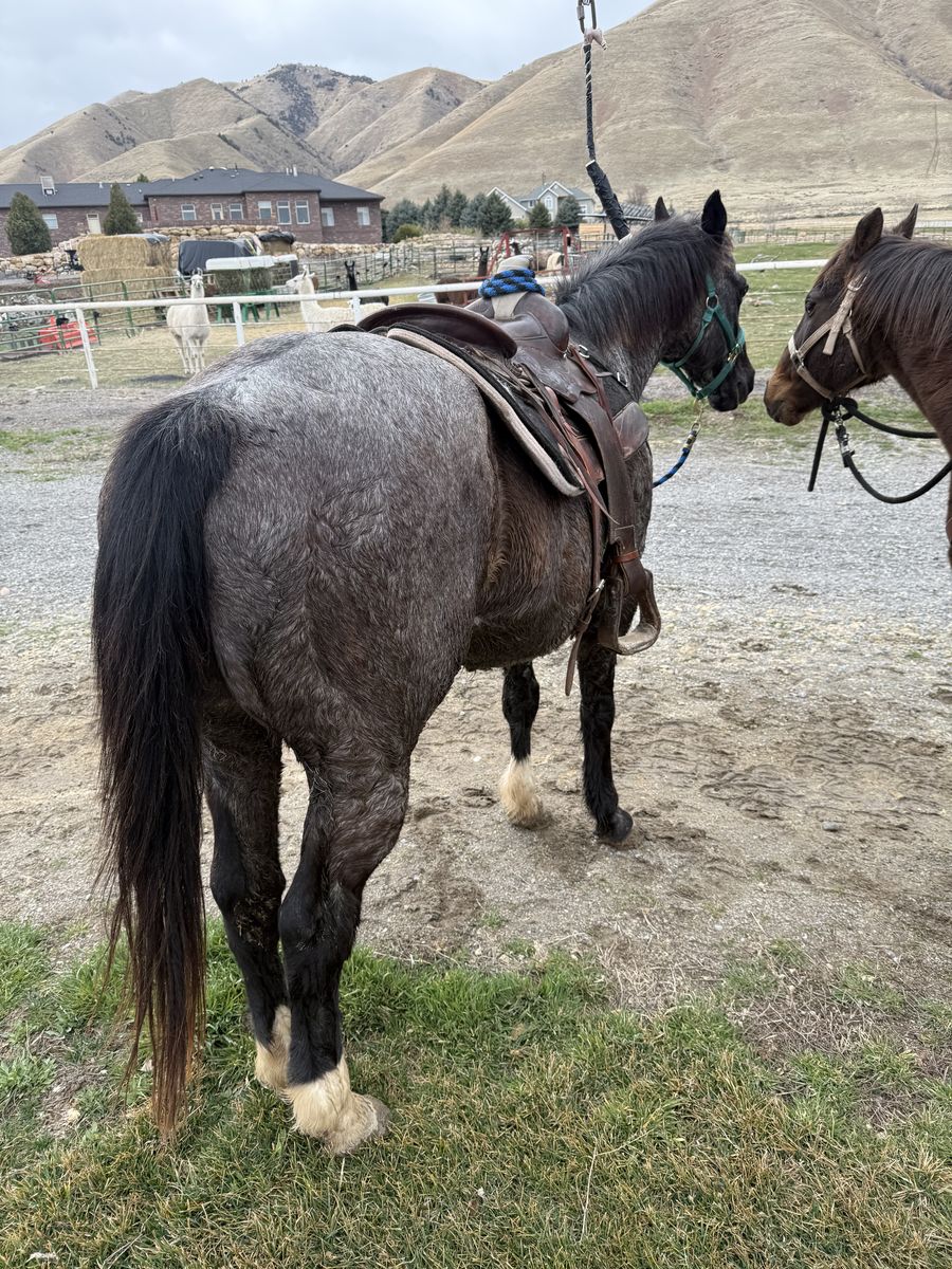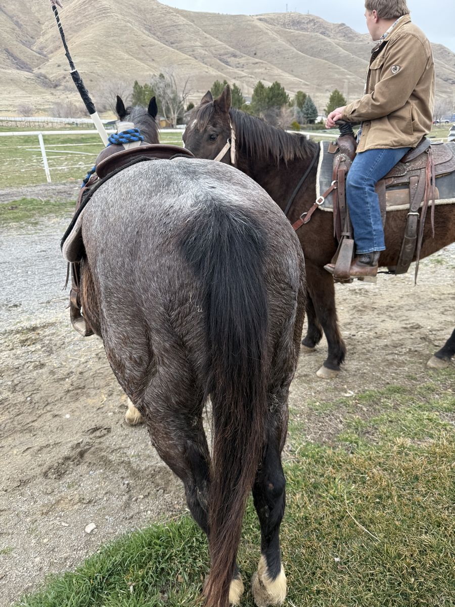 Zelle(2) quarter horse type gelding for sale. These are unregistered, grade horses. They are about 23 years old and have been companions for the last 20 years. We’d like to keep them together if we can. My wife and I are headed out for about 18 to 22 months. So we need to sell these horses. They are unregistered grade horses. Taco is a bay and he’s about 14.1 hands tall. He is an incredible horse for any rider. Great on trails, great to learn on, he hooks up with children really easily. Blueberry is a gray roan and he is about 14.1 hands also. He requires more of an experienced rider. He’s very competitive. He loves to walk fast on a trail, he loves to move cattle he’s been team roped off of as a heading horse and a heeling horse. If he’s not ridden often, he likes to play a lot when you first start out. By play I mean he crow hop a little bit. He’ll even buck a little bit. He needs an experienced rider, that’ll growl at him and tell him to quit and he usually stops pretty quick. Once he gets lined out to go to work he’s fine. We are asking $3000 for the pair of them or best offer. Come and give them a try. Call me at (951) 816-8068. I can send you a couple of videos too. Thank you for your consideration.