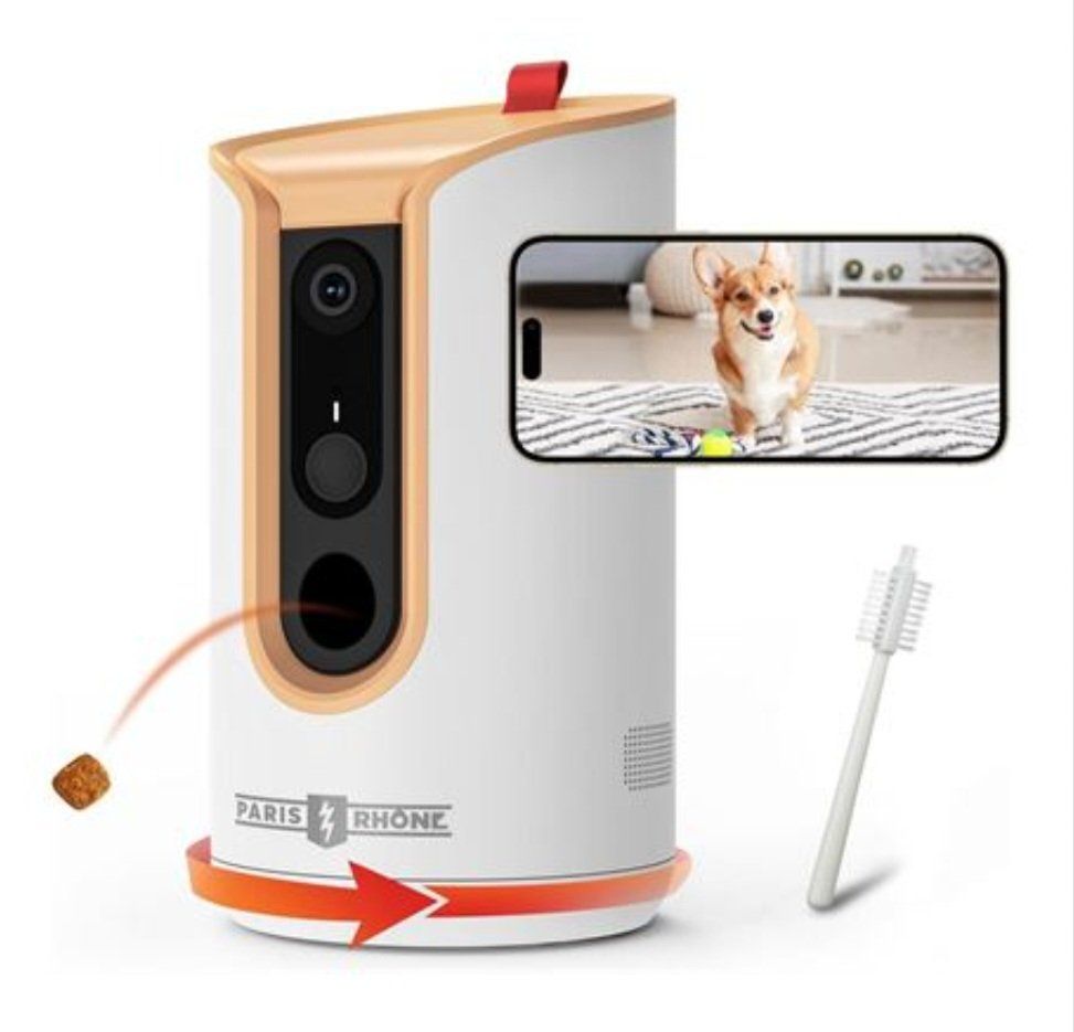 PARIS RHÔNE - 2K Pet Camera, Dog Camera Treat Dispenser with 360° View, WiFi 5G for Pet Monitoring with Phone App, Two-Way Audio, View (Grey/White).