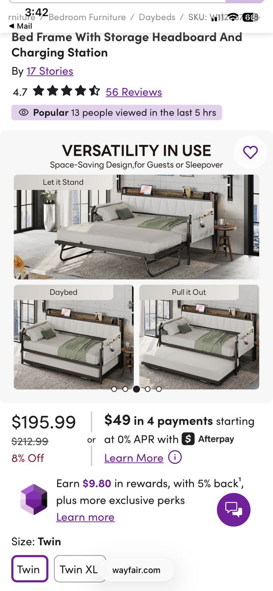 Link to the bed on Wayfair so you can see specs: https://www.wayfair.com/furniture/pdp/17-stories-bed-frame-with-storage-headboard-and-charging-station-w112887878.html?piid=1890009238%2C1898138033