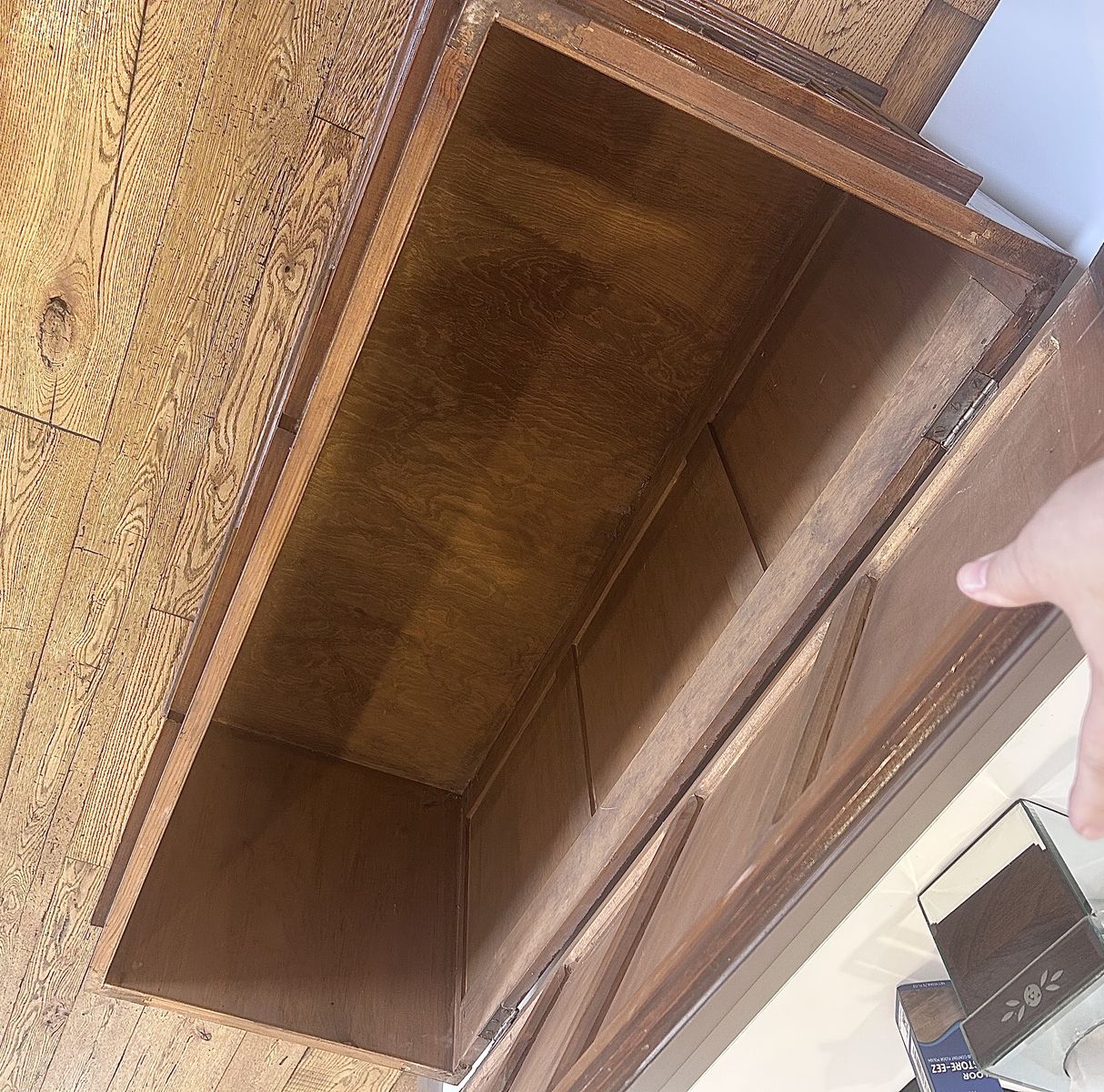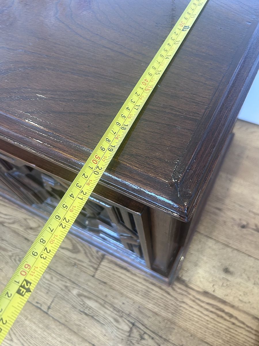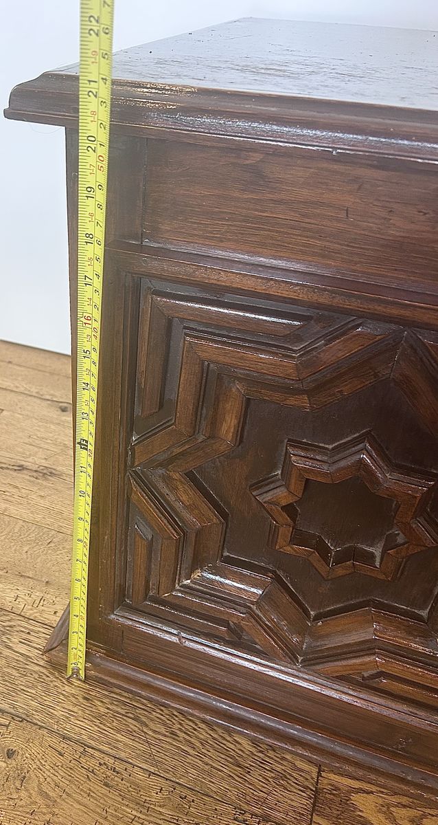 ZelleThe Mid Century Modern Chest is an antique piece of furniture with a modern style, featuring a rectangular shape and a walnut finish. Handmade in the United States in the 1920-1949 time period, this chest is crafted from wood and walnut materials. It stands at 21 inches tall with an interior height of 18 inches, making it ideal for any room, bedroom, or living room. This free-standing chest has a hinge door mechanism and comes in a brown color, adding a unique touch to any space.