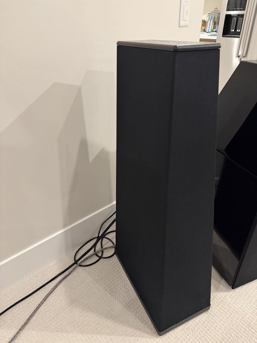 Core Specifications Frequency Response: 24Hz – 30kHz, ±2dB Sensitivity: 87 dB (1 watt / 1 meter) Impedance: 6 ohms nominal (±3 ohms) Crossovers: First-order (6dB per octave) at 100Hz, 900Hz, and 5kHz Dimensions (WHD): 10” x 43” x 19” Weight: 110 lbs. each