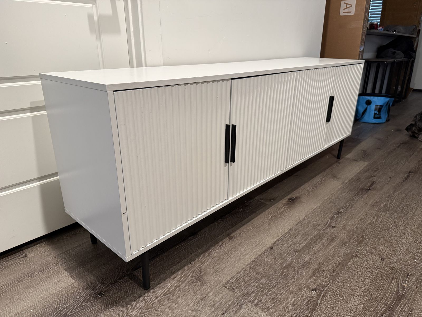 VenmoBrand New Vipbear White 70 Fluted TV Stand with Adjustable Shelves for TVs up to 80 Inches, Entertainment Center with Storage, Modern TV Console for Living Room