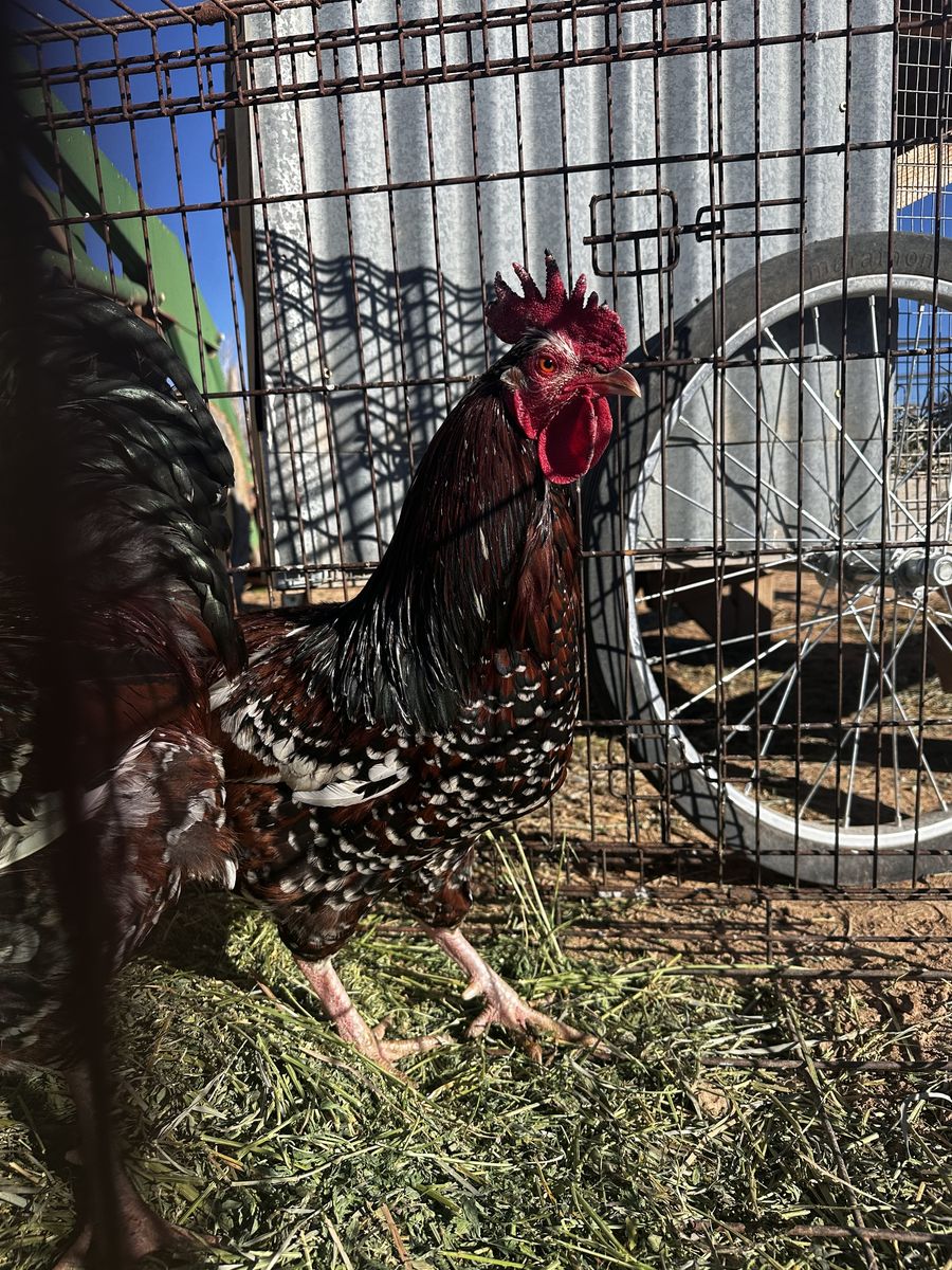 We have a two-year-old Americana rooster and a one-year-old speckled Sussex. Americana is mean. The Sussex has started running after my kids.