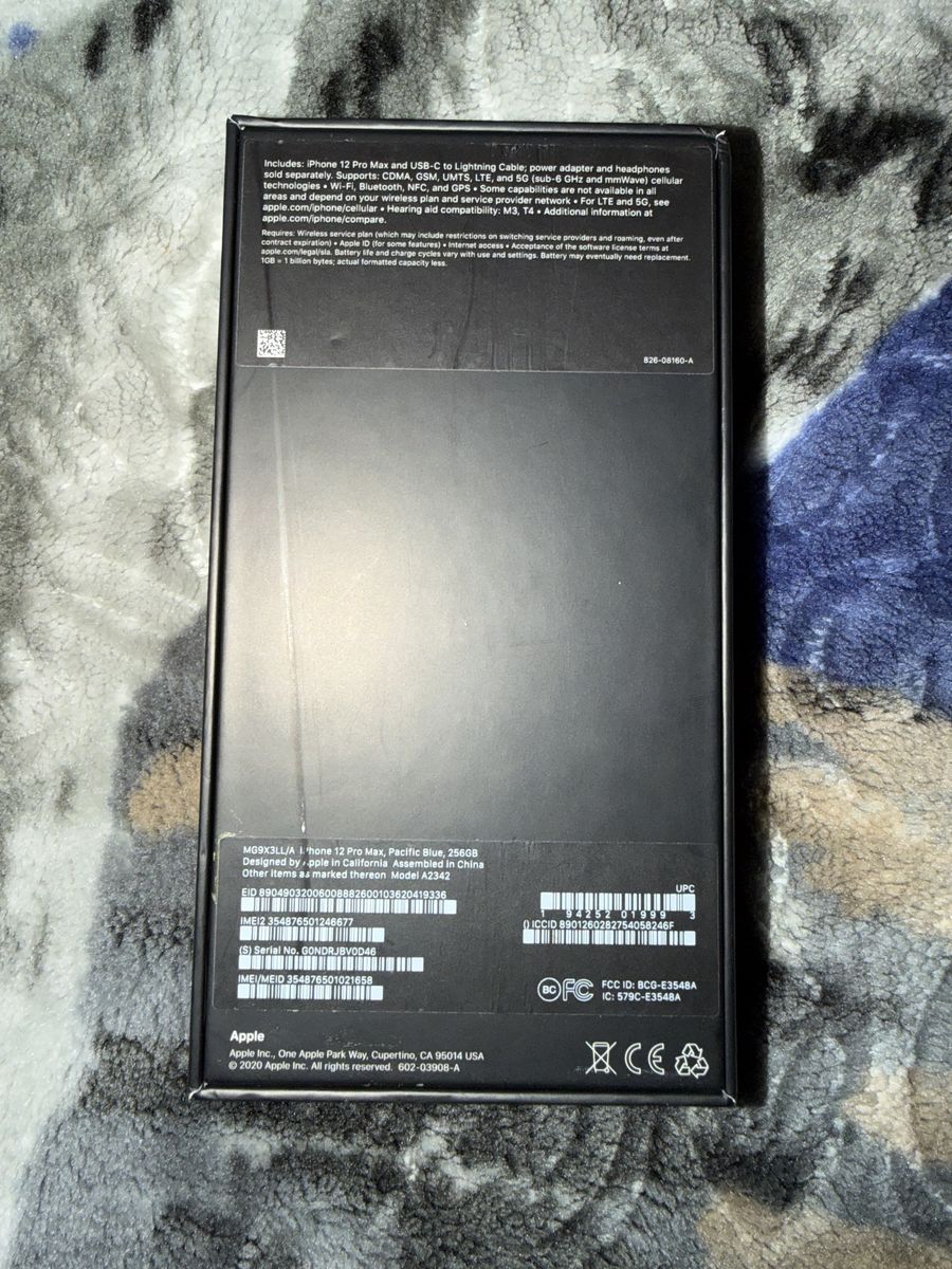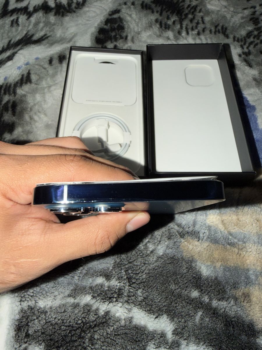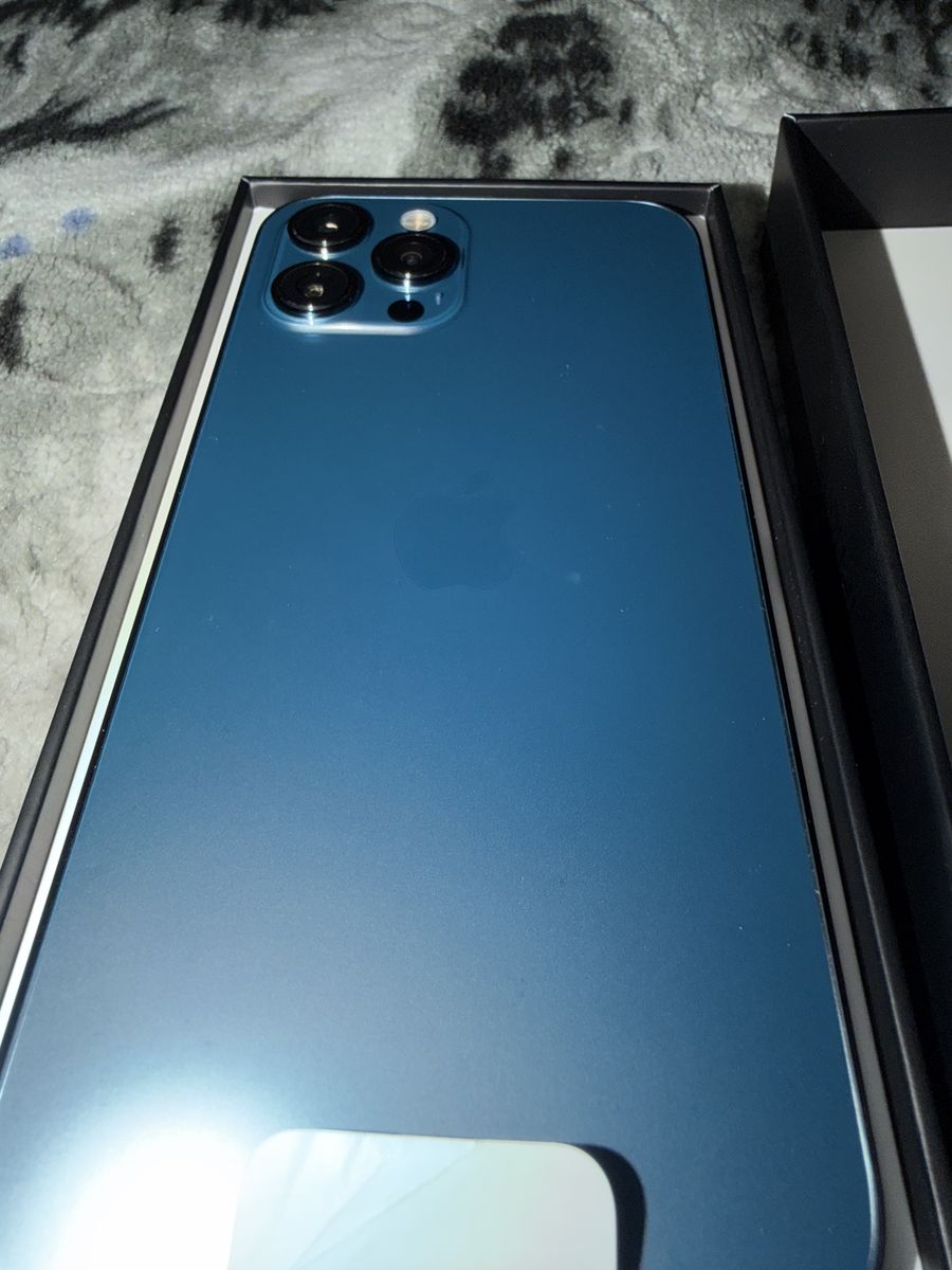 ApplePayPacific Blue Like new IPhone 12 Pro Max 256 Gb with original box. Unlocked ready for any carrier. privacy screen protector installed. $550 or best offer.