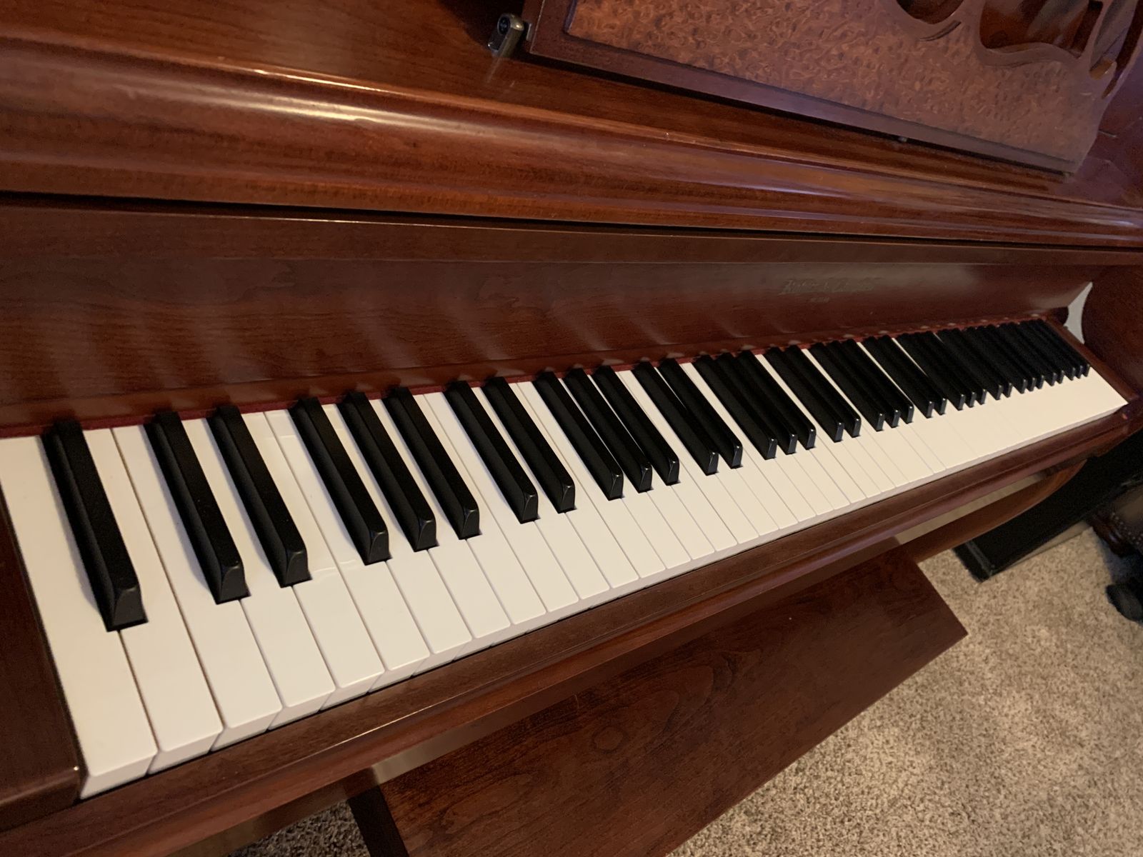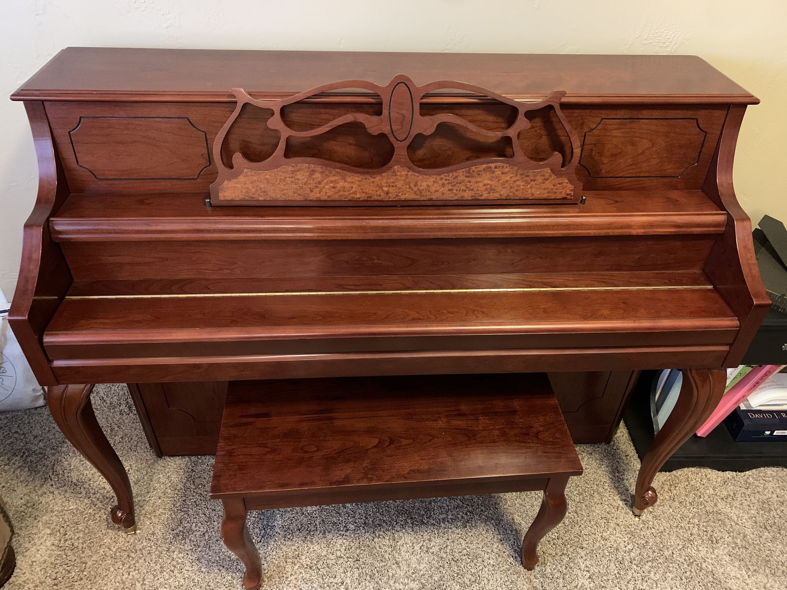 VenmoMoving Sale. Beautiful Campbell & Koehler upright piano in a classic cherry wood finish. This piano has been recently tuned and sounds great! It has a warm, rich tone and elegant look that fits perfectly in any living room, studio, or music space. The cherry wood cabinet is in very nice condition with only minor normal wear. All keys and pedals function properly. This is a great piano for beginners, students, or experienced players looking for a quality acoustic instrument.