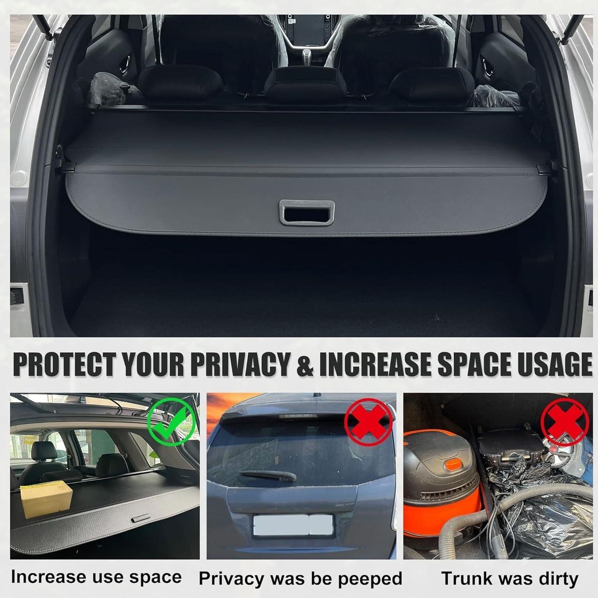 Fitment: for 5 Seater for trunk shorter style. For Cadillac Escalade 2021-2023 for Cadillac Escalade ESV 2021-2023 for Chevrolet Suburban 2021-2024 for Chevrolet Tahoe 2021-2024 for GMC Yukon 2021-2024 for GMC Yukon XL 2021-2023.Part Number: 84390976.Not fit for extended version car Material: The main bar is made of aluminum alloy stronger and more durable. The cargo screen is made of waterproof canvas is wear resistant and is easy to clean. Function: Retractable adjustable design protect your valuables cargo and privacy. Provide larger storage space portable parcels could be loaded on the cargo screen. Easy Installation: Installation in a short time and without tools. Equip with an open handle easier to pull out and release. Package Included:1 x Rear Retractable Security Cargo Cover.
