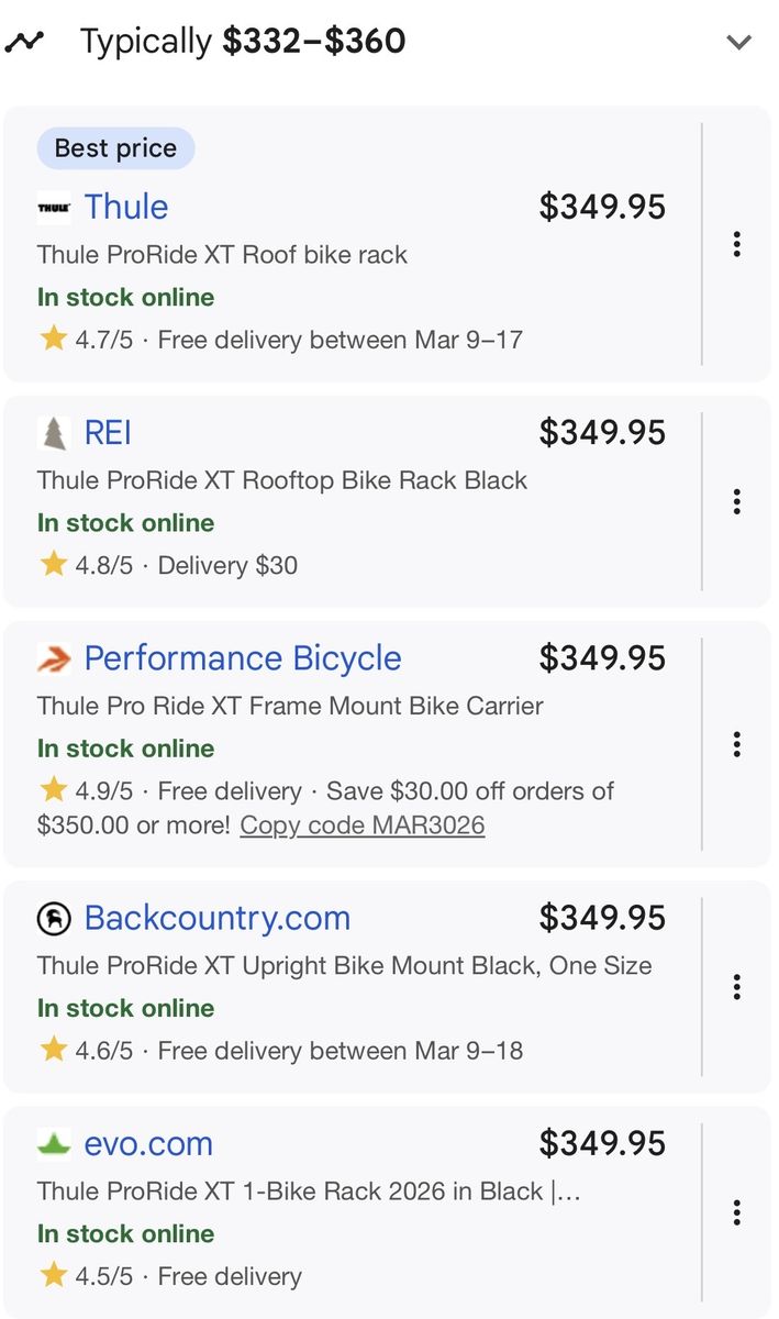 VenmoThule ProRide XT Roof Bike Rack , Universal Upright Bike Rack For 1 Bike Brand New In The Box Cash Preferred Venmo Accepted Pick Up In Roy
