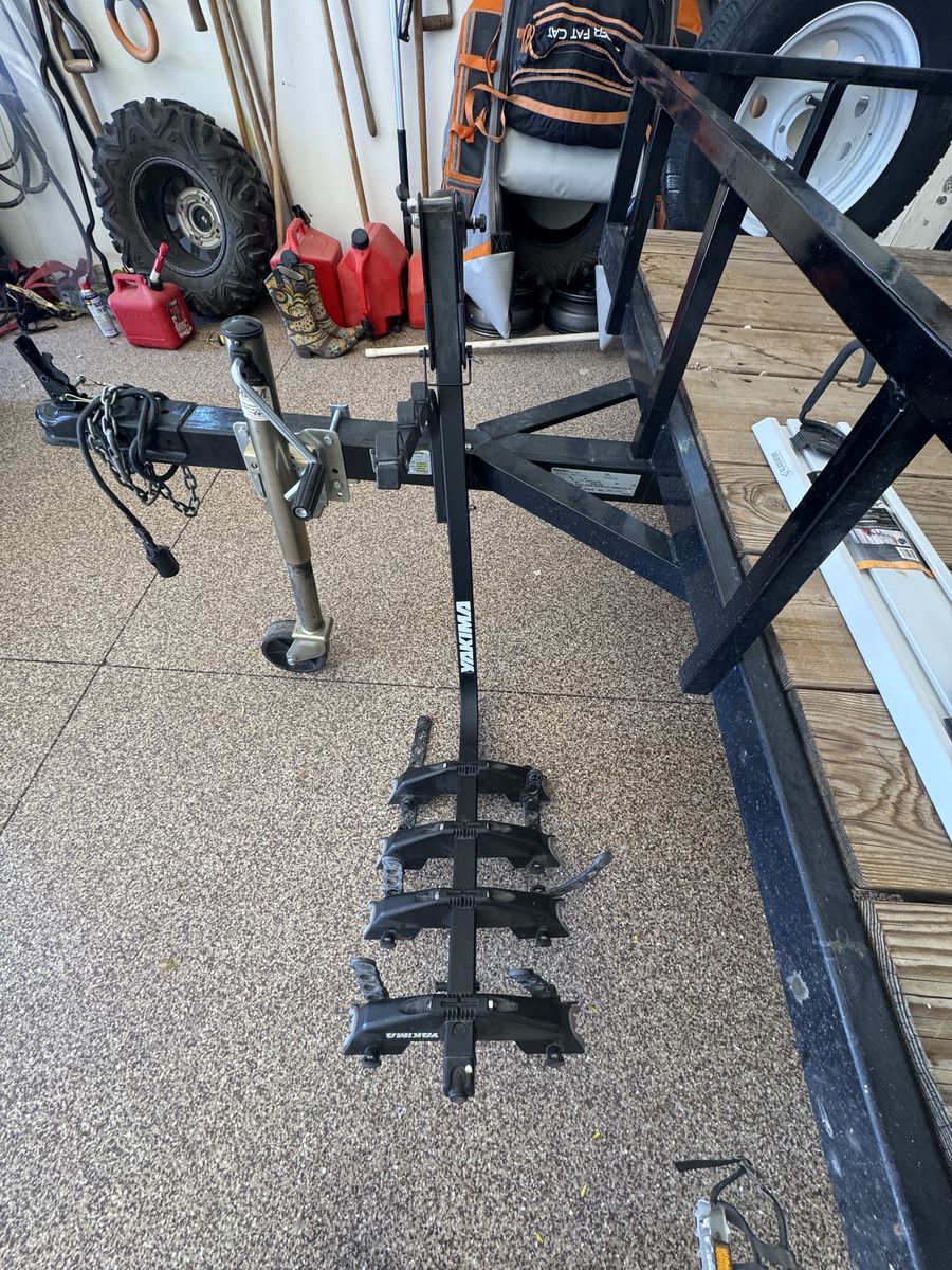 Yakima trailer hitch mount locking travel rack holds 4 bikes. Swing down for rear door access while loaded. (Original cost of the rack was $698)