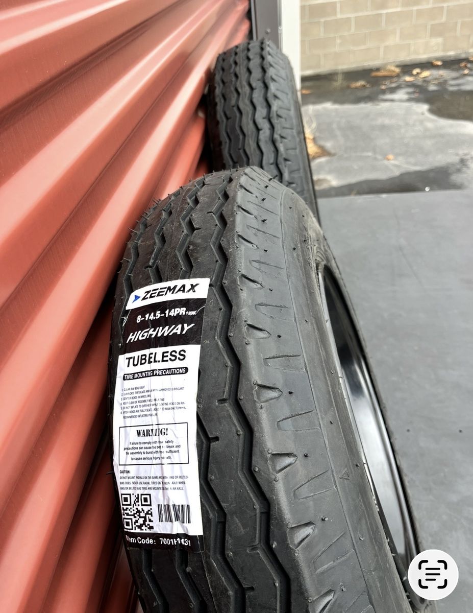 VenmoBrand new Zeeman 8-14.5 Mobile Home Style Tires 14 Ply Rating Mounted on New Wheels 225.00 for Both