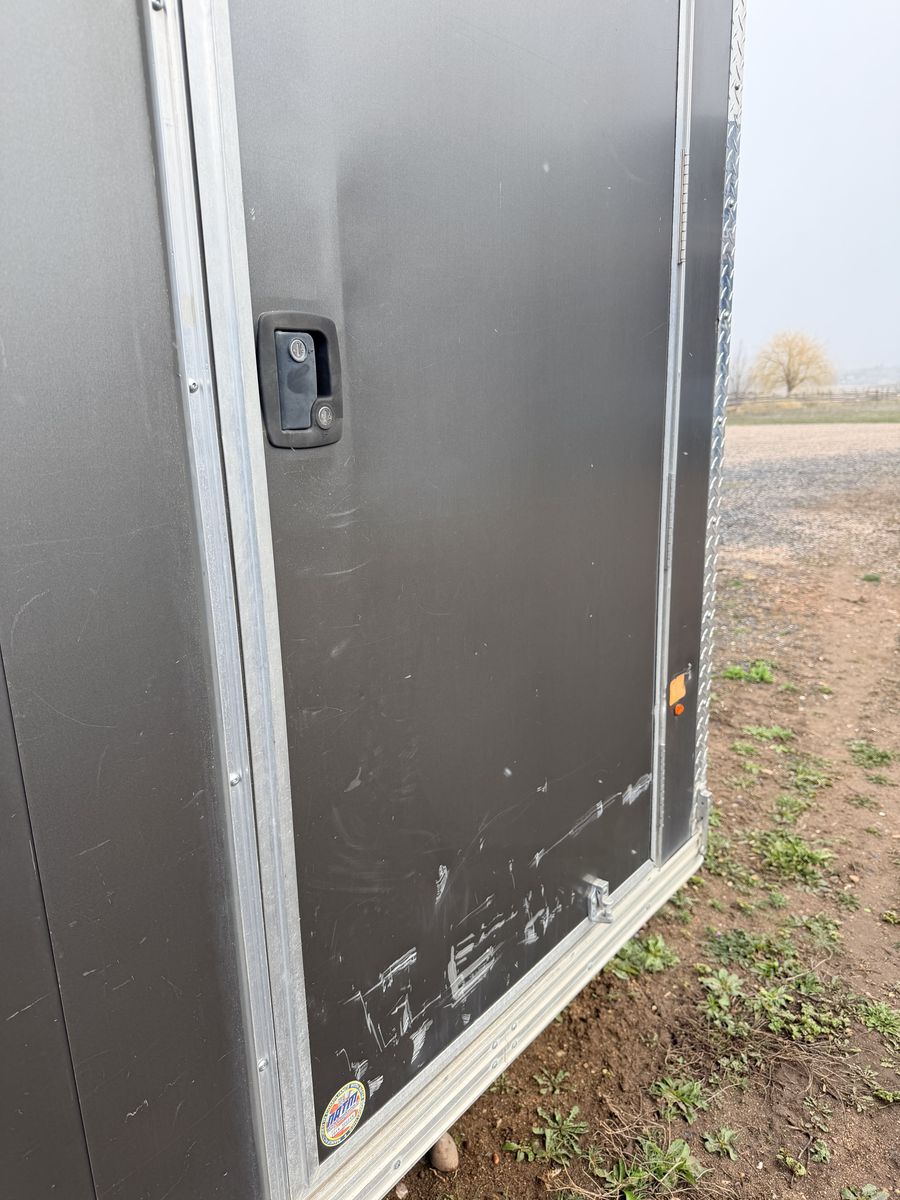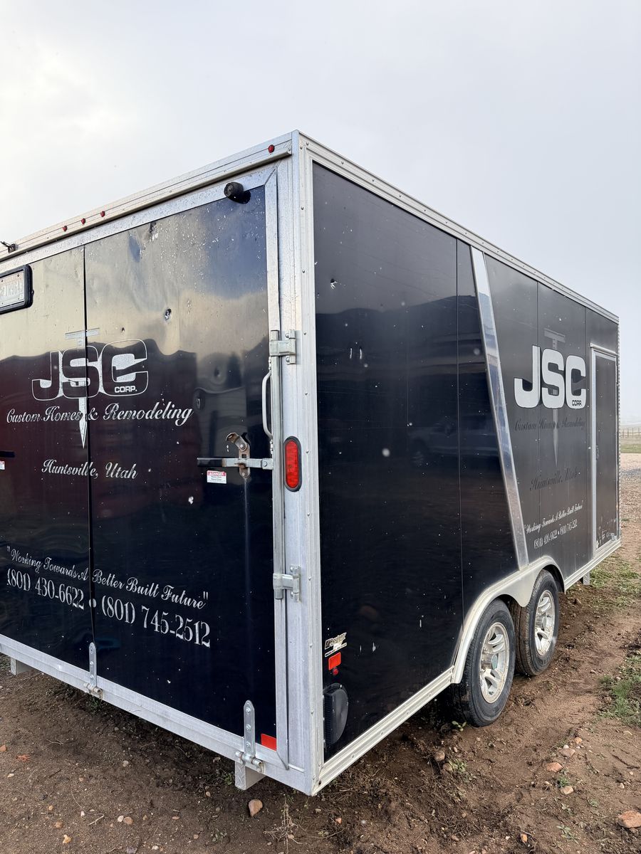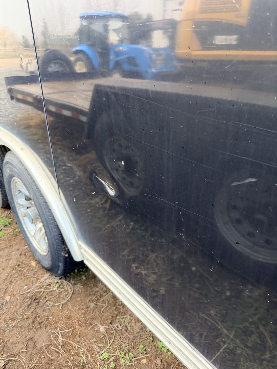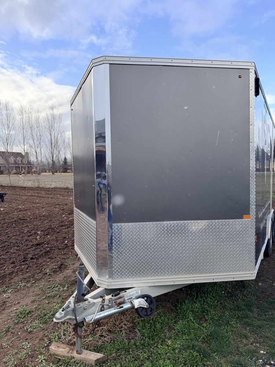 I am selling my Stealth all aluminum trailer. It is a 16’ box plus about 4’ v nose, 7.5’ wide so you don’t have any exterior fenders. The trailer was used as our equipment trailer until the past couple years. It’s a very low mileage trailer but high use. Floor is excellent besides oil stains as it was always covered. New tires were put on it a little over a year ago. It tows great. We just needed a bigger one. Sold as is with logos on it. They can be removed and either wrapped or painted over if desired.
