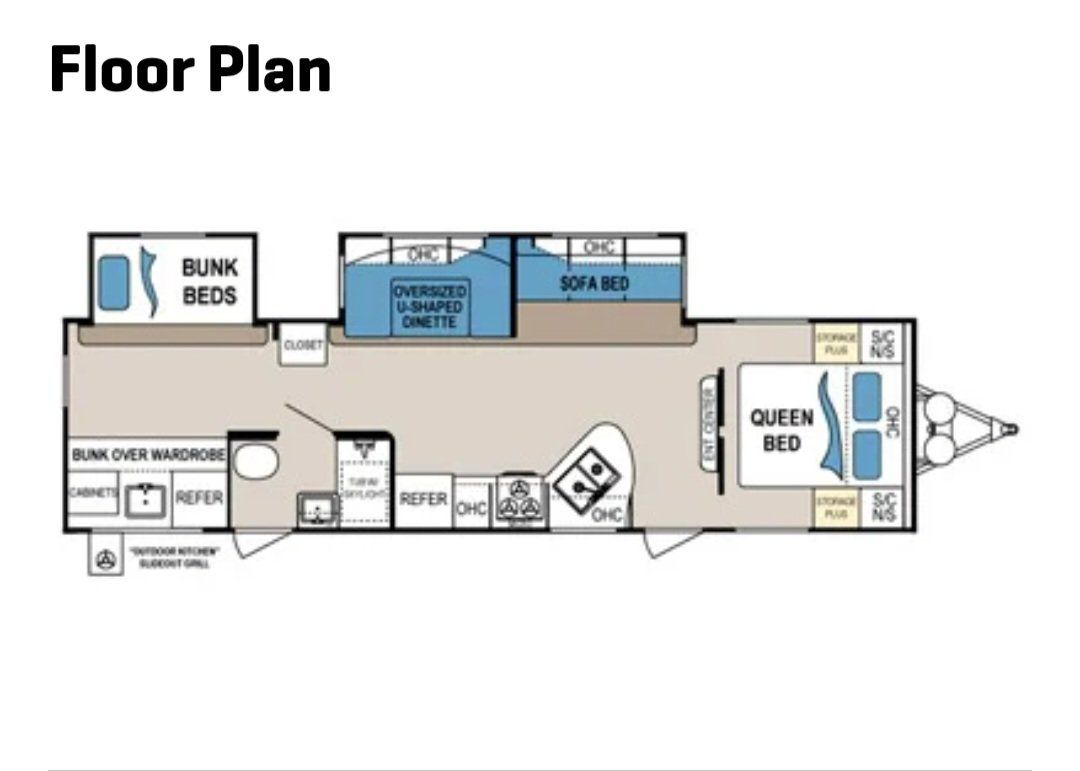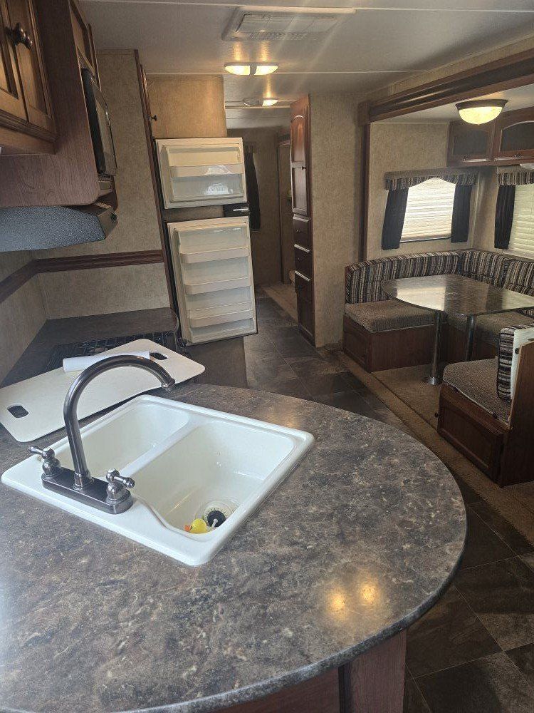 Great family camper with a spacious layout and 2 slide-outs. The rear bunkhouse makes it perfect for kids or guests, and the front private bedroom has a queen bed. Everything works as it should and it’s ready to go camping.