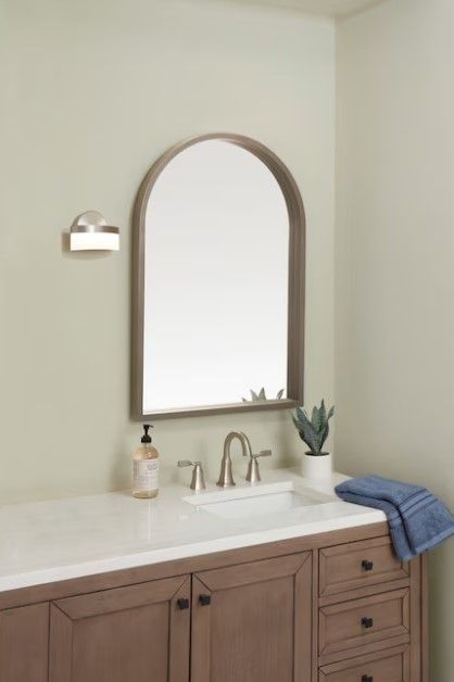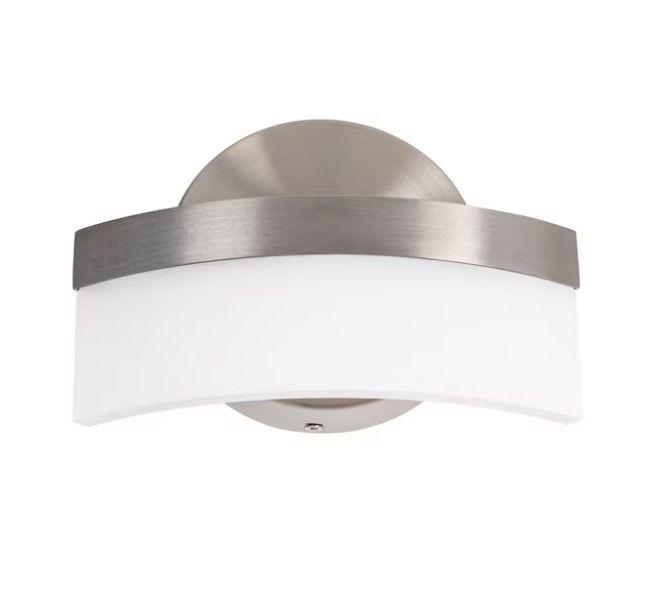 This beautiful wall sconce light from the Lynnpark collection will be the perfect addition to your home. The sleek brushed nickel finish and frosted acrylic shade will bring a sense of updated style and sophistication to your bathroom.