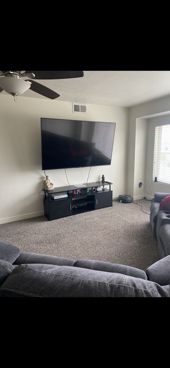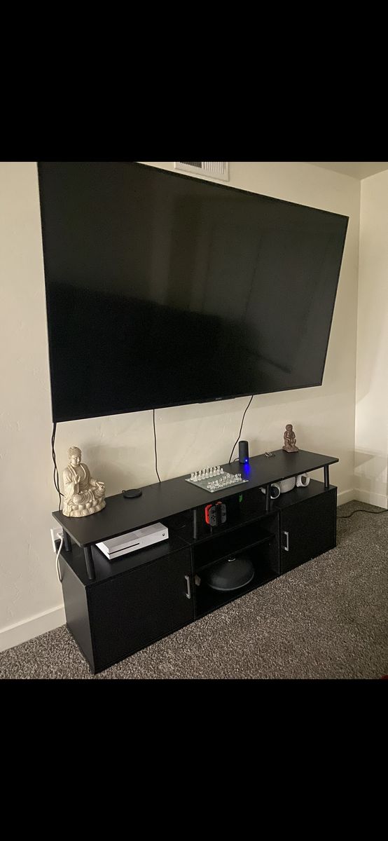 Black Two tier TV stand. Perfect for media room/living room and offers added storage. Send an offer, willing to negotiate.