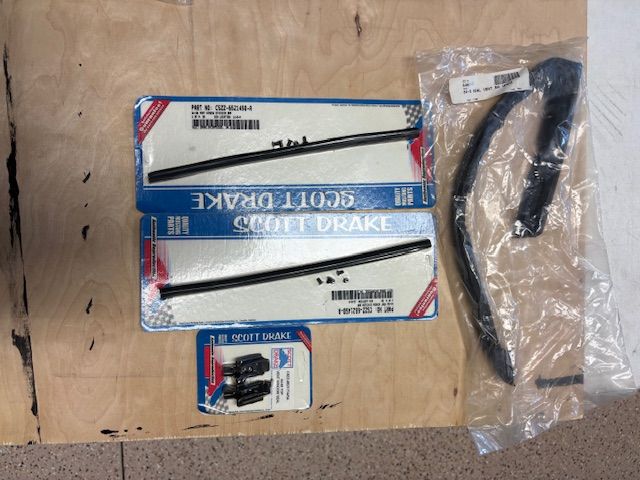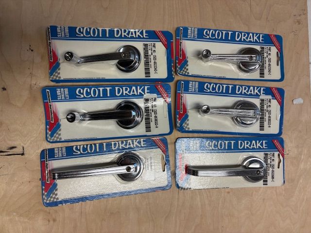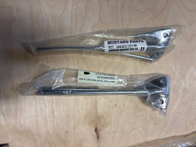 1966 Mustang interior door handles and window cranks, sun visor brackets and rods. R/H vent window seal. (2) vent window division bar, Door lock knobs, chrome plate for air. All parts are new accept for the chrome plate.