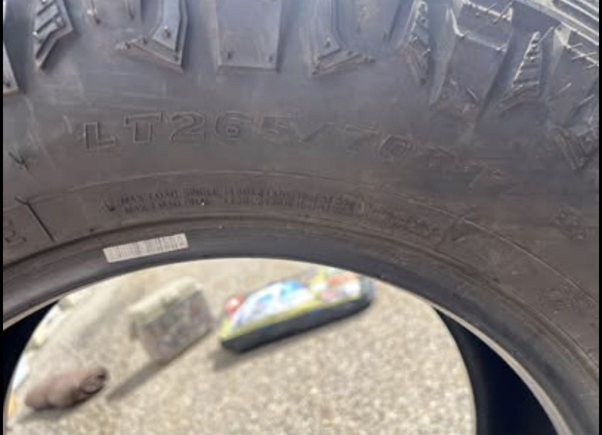 VenmoStill have 40% tread or so, would be good for a full size spare or if you need to replace one or two in a set. I have two available. LT265/70R17