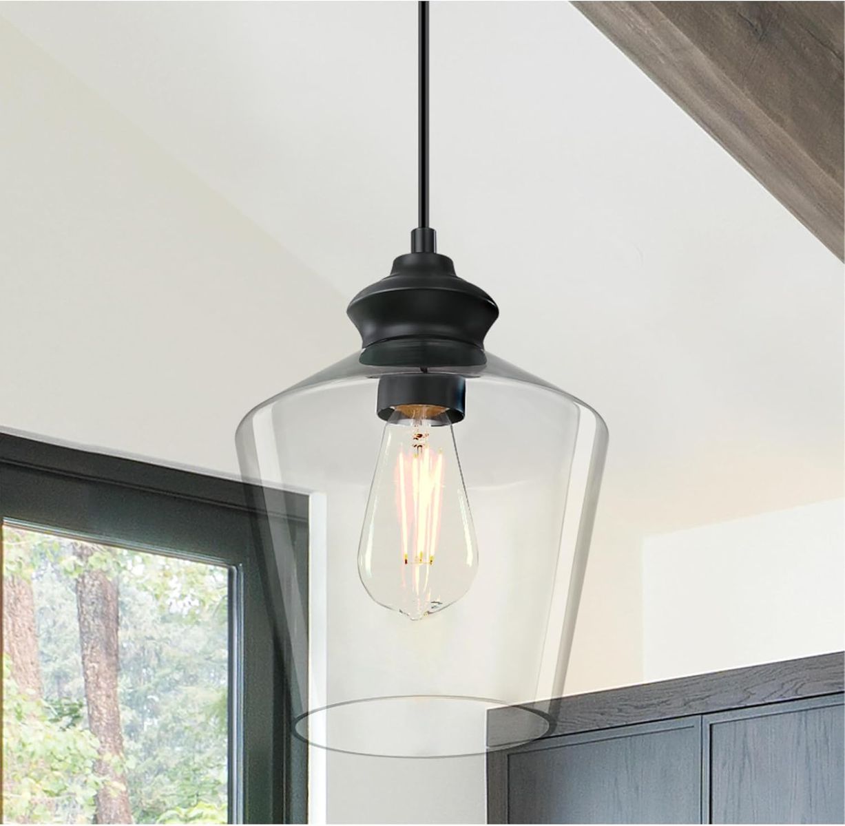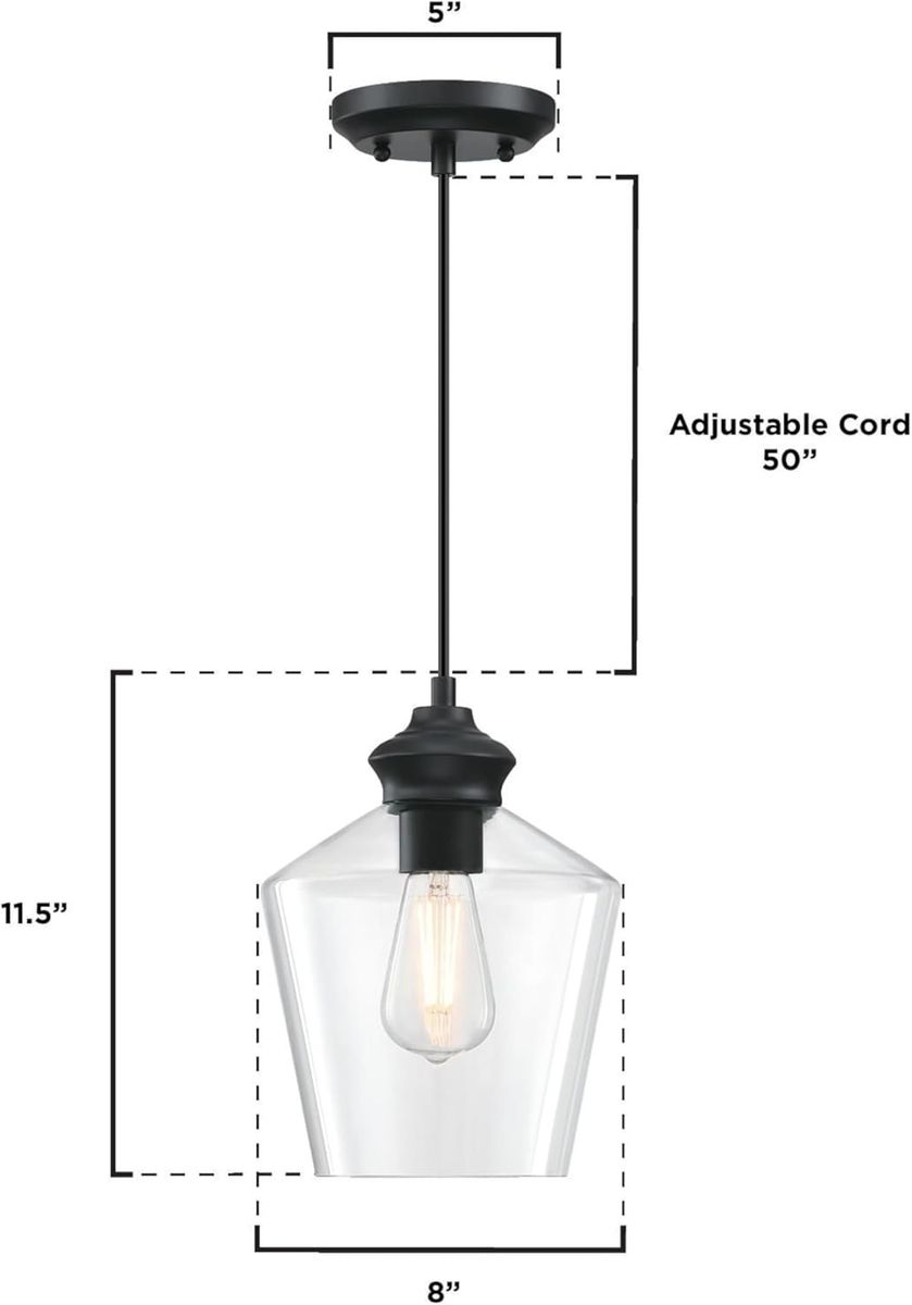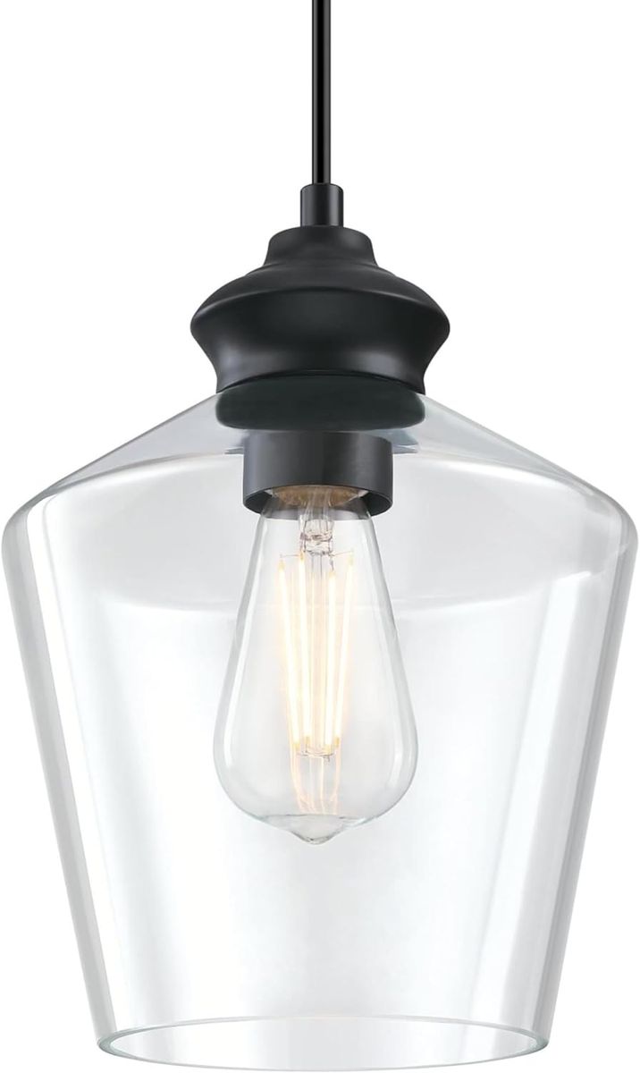 About this item - Transitional one light mini pendant with matte black finish and handblown clear glass shade