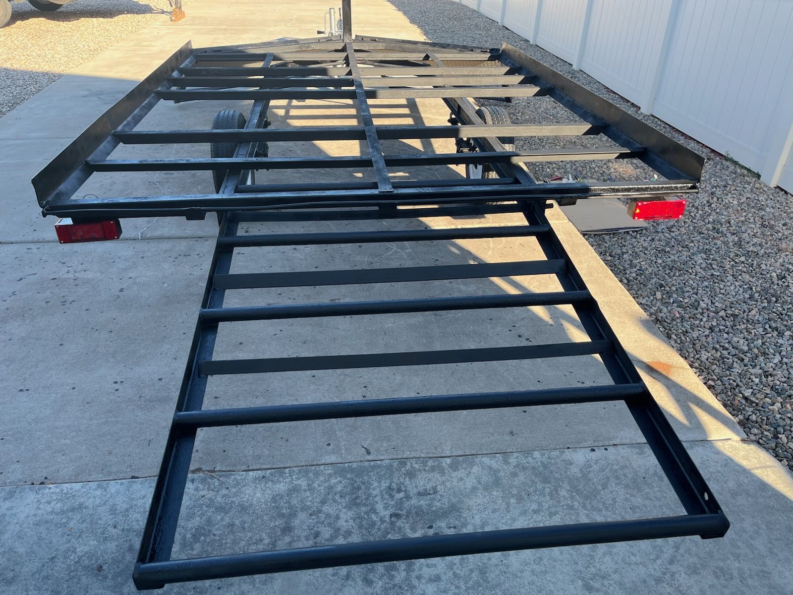 Nice trailer, fully refurbished, better than new. 8x12 deck, 3500 lb axle. Must see to appreciate. New decking, new lights, new tires, new hubs, new runners, skag guards, etc. Everything on it is new with and a repainted chassis.