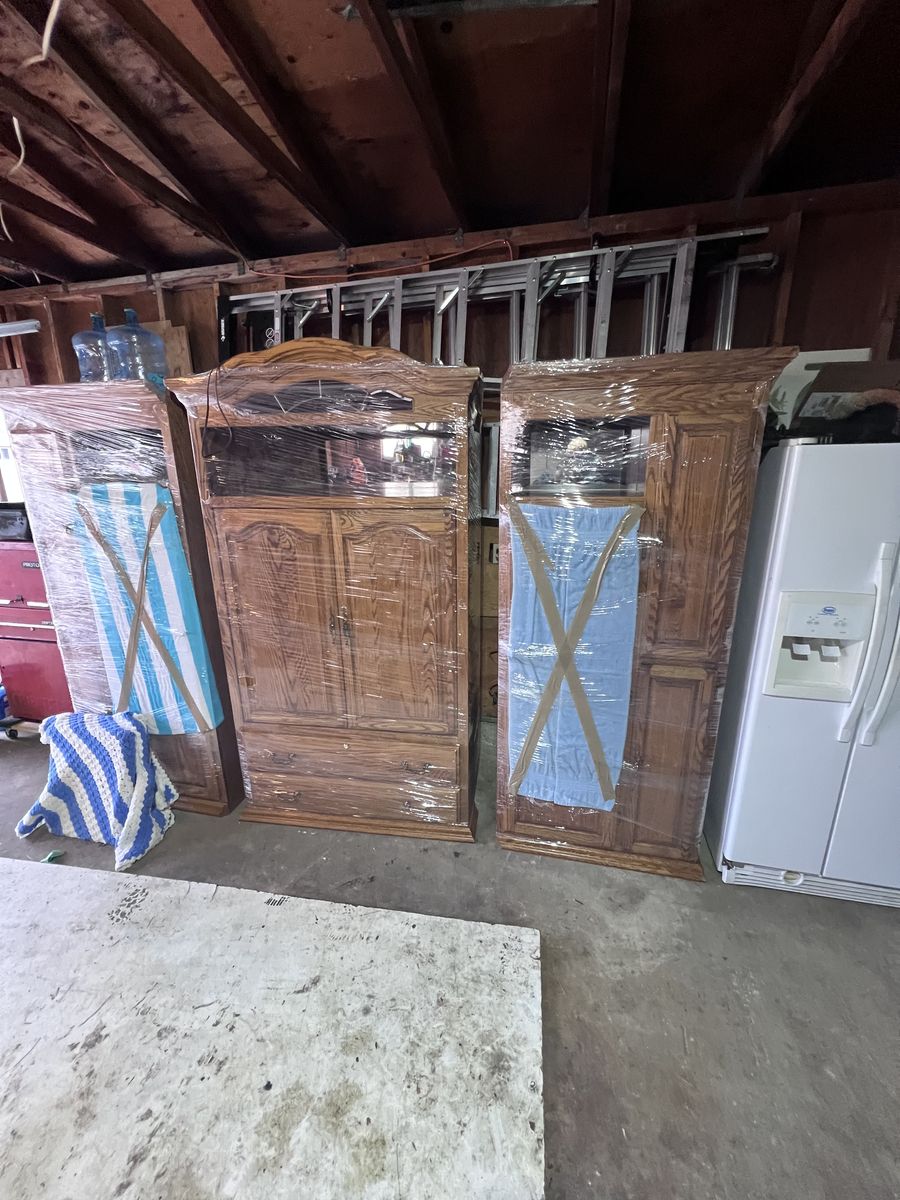 112 inches wide 26 inches deep 81 inches tall Oak entertainment center in great condition wrapped up and ready for its next owner for more info message or text price is $200