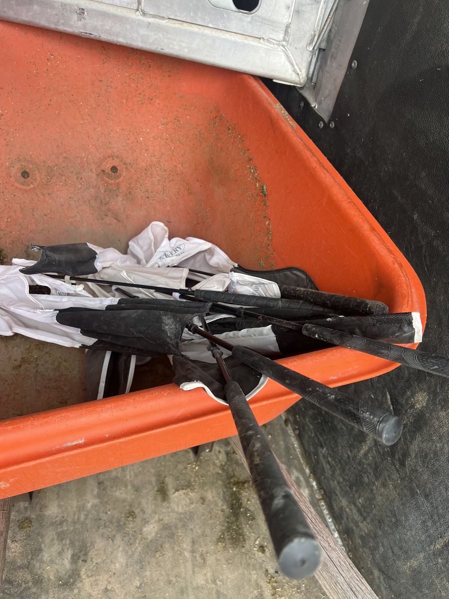 Carry lite shells. Used to be 20 dozen. Maybe 18-19 dozen. Tons of silhouettes. 5 flags. This is an awesome setup and adds a lot of white to a field. Better than socks I think. Call or text. Make an offer