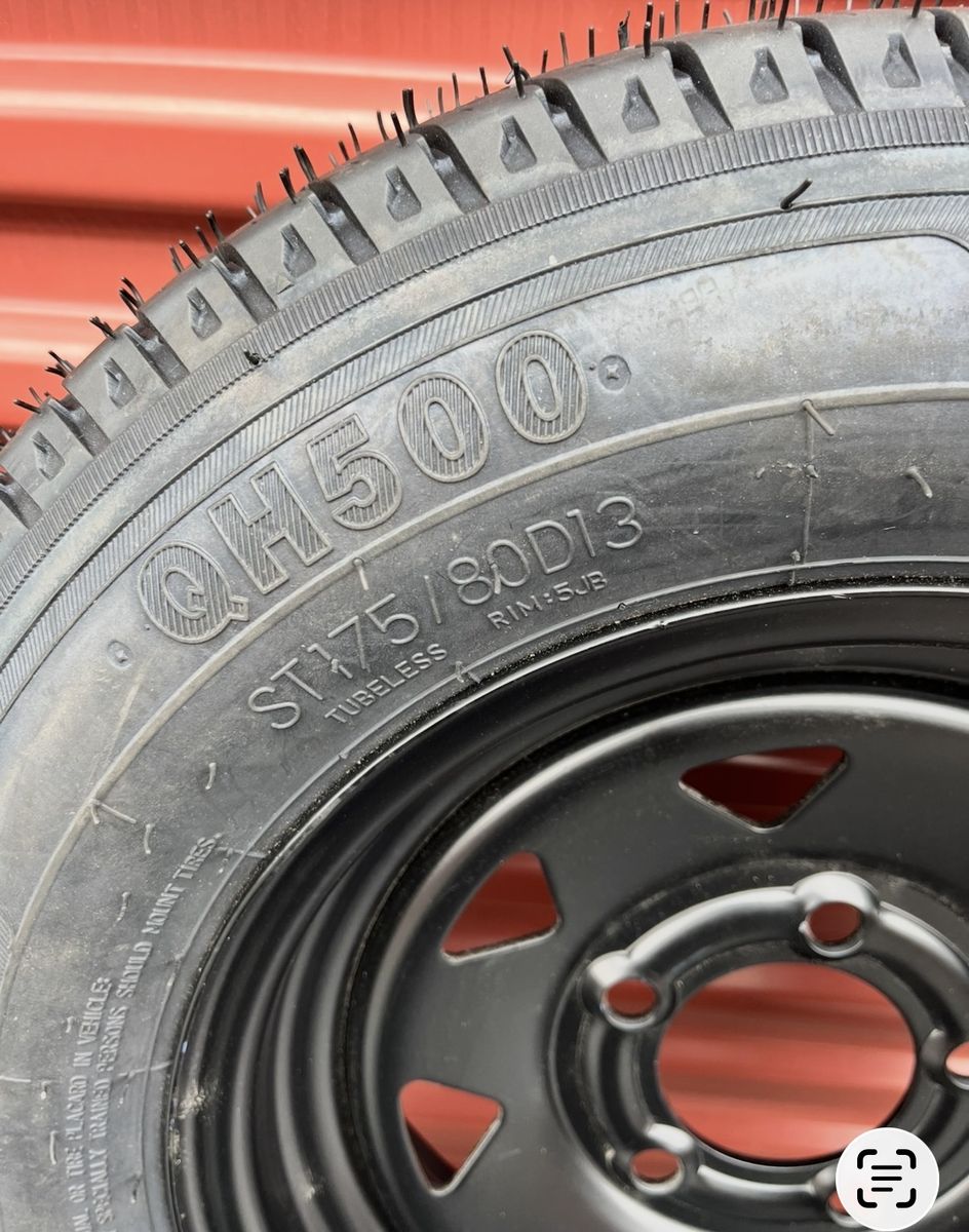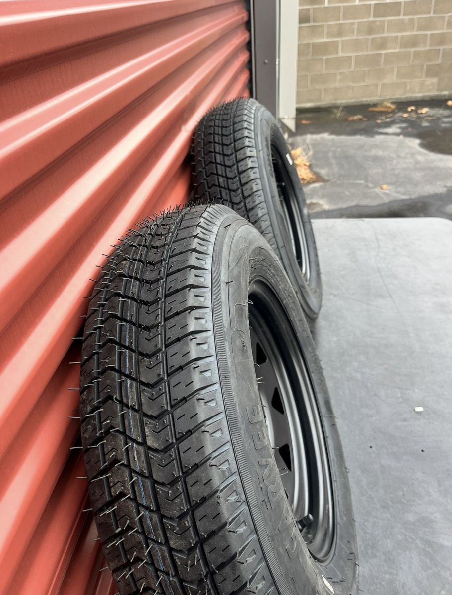 VenmoBrand New Set of Two Garvee ST 175/80 D 13 Trailer Tires Mounted on Flat Black Wheels 5 on 4.5 Pattern 150.00 for Both