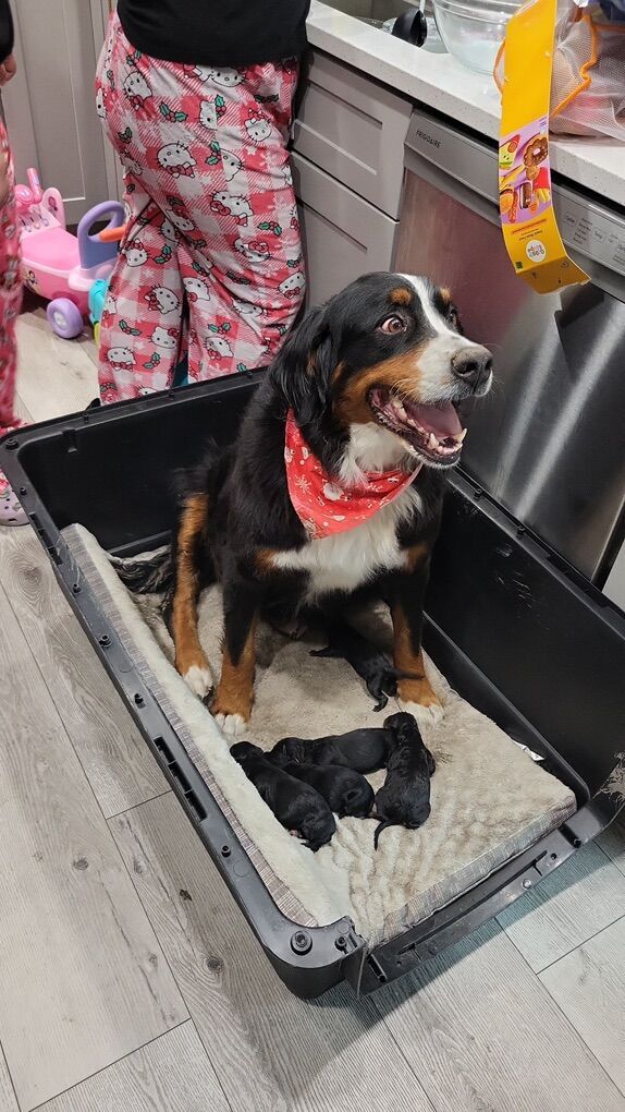 Venmo10 week old female bernadoodle. Born 12/26/2026 Mother is Bernice Mountain and Father is Golden Doodle. She already has her first set of shots ( 2/19/26 ) and is potty trained to go outside. $200.00 non refundable deposit req to hold.