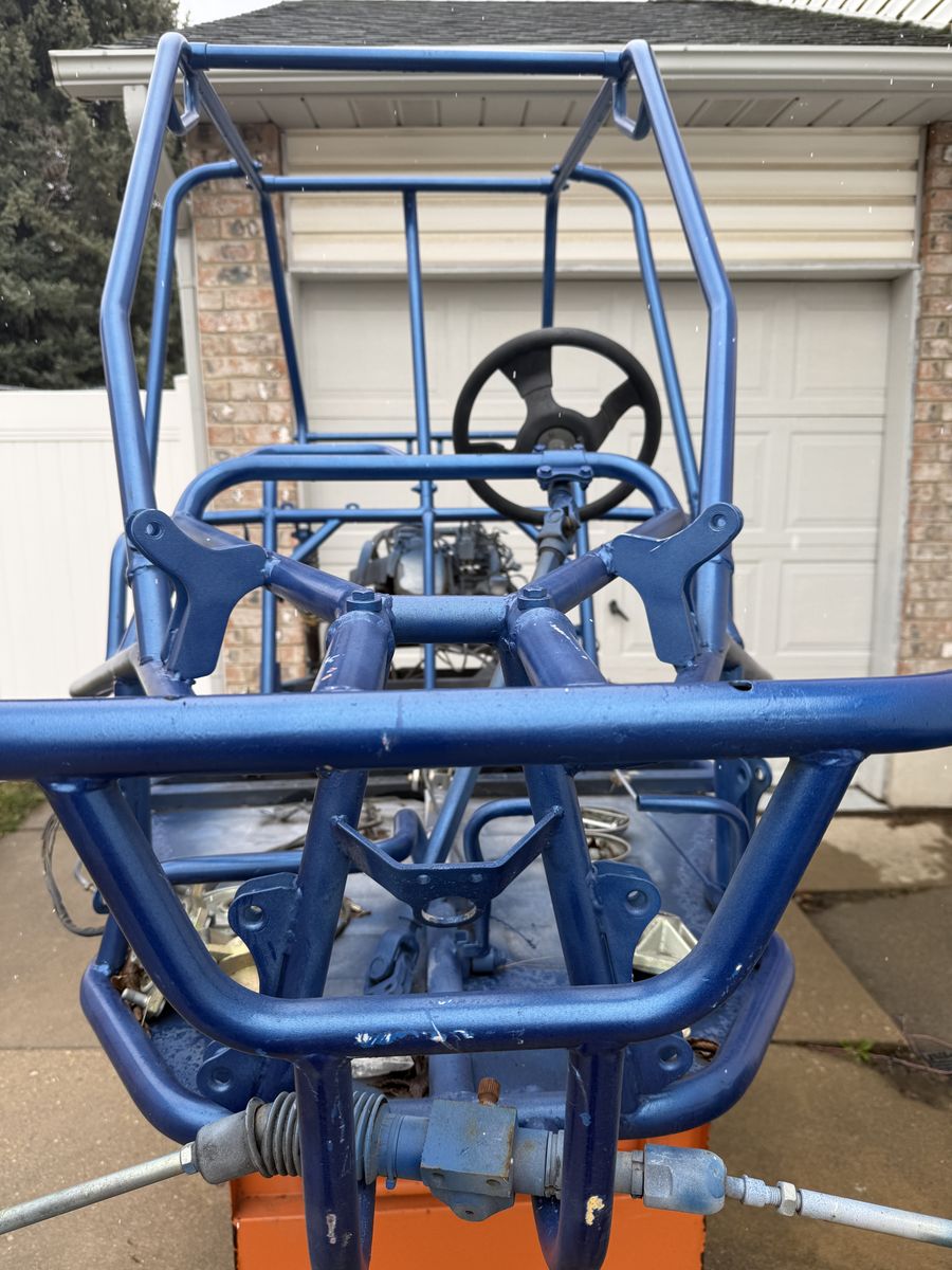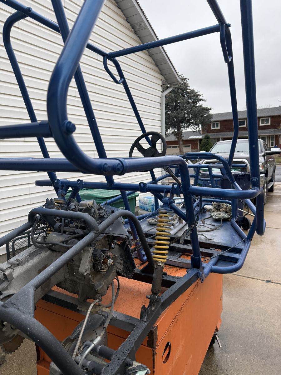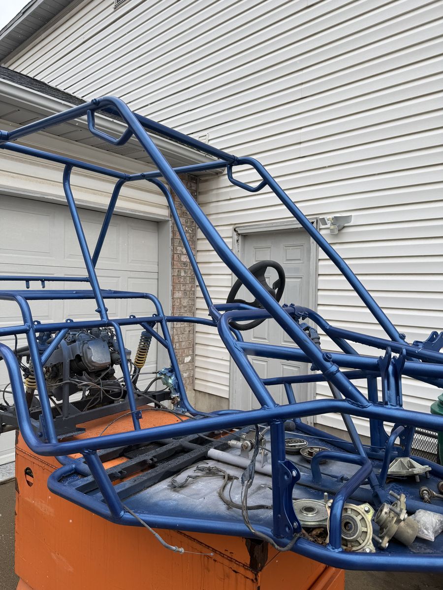 A project ready to go! Frame has been sanded, primed and painted. It will come with brand new tires already mounted on rims. I have various other parts for it that will go as well. Seats and brand new engine are available as well.