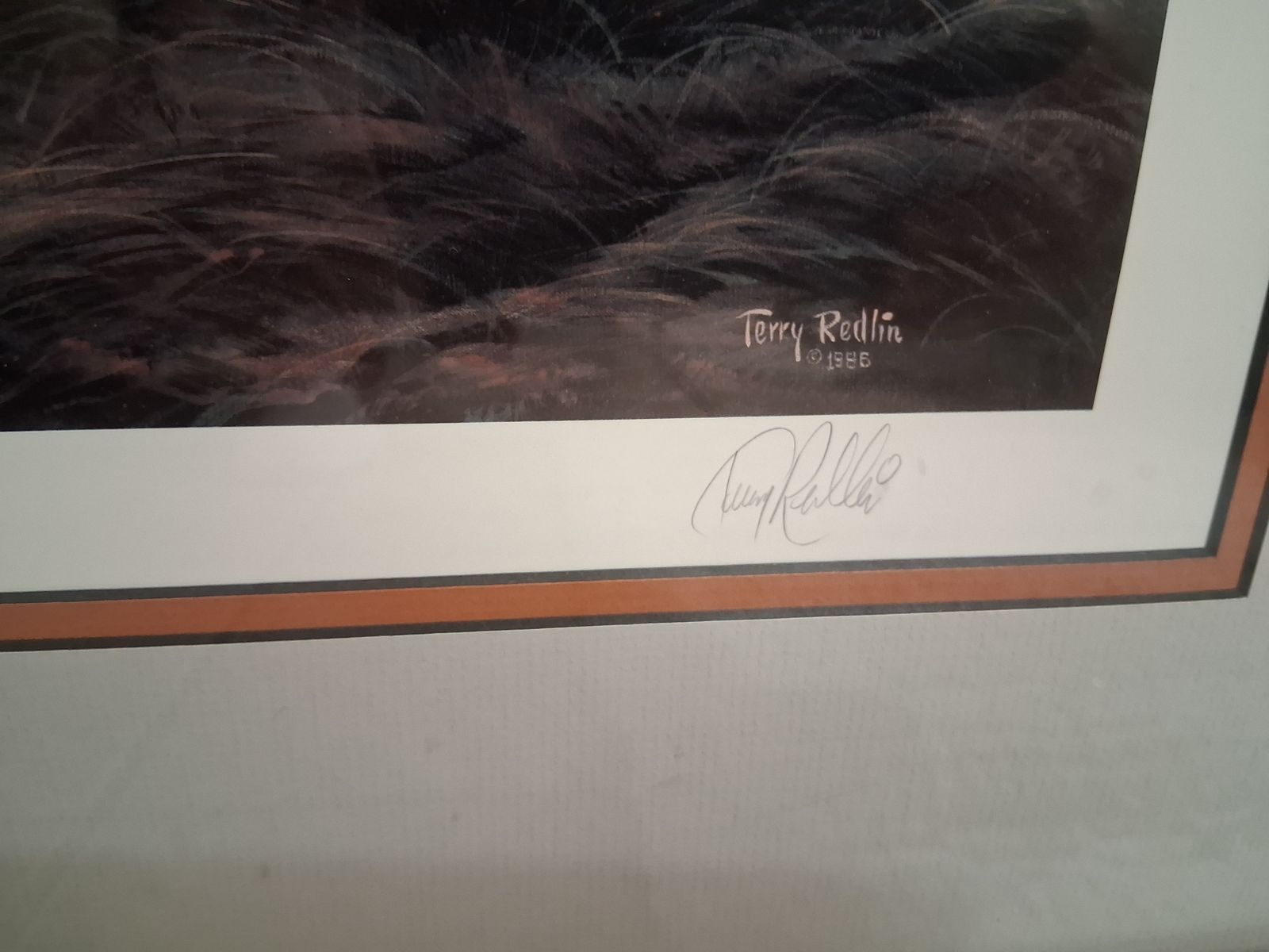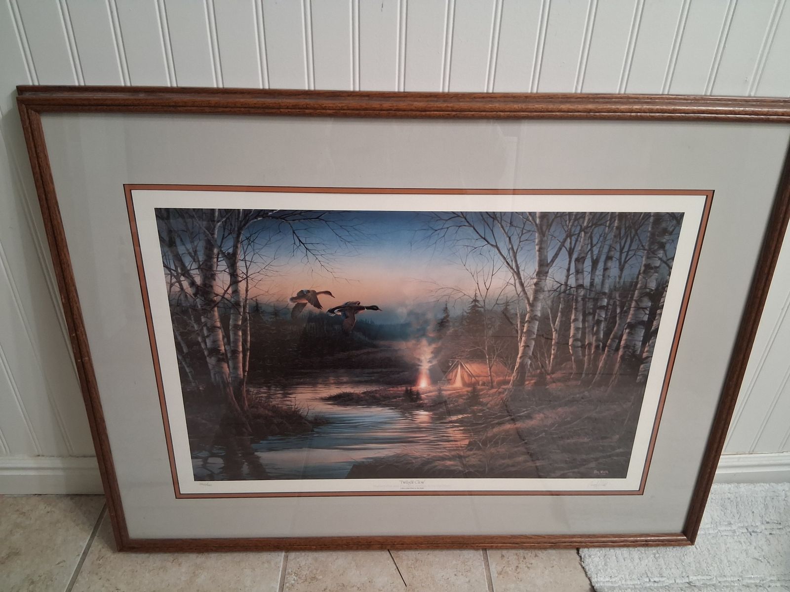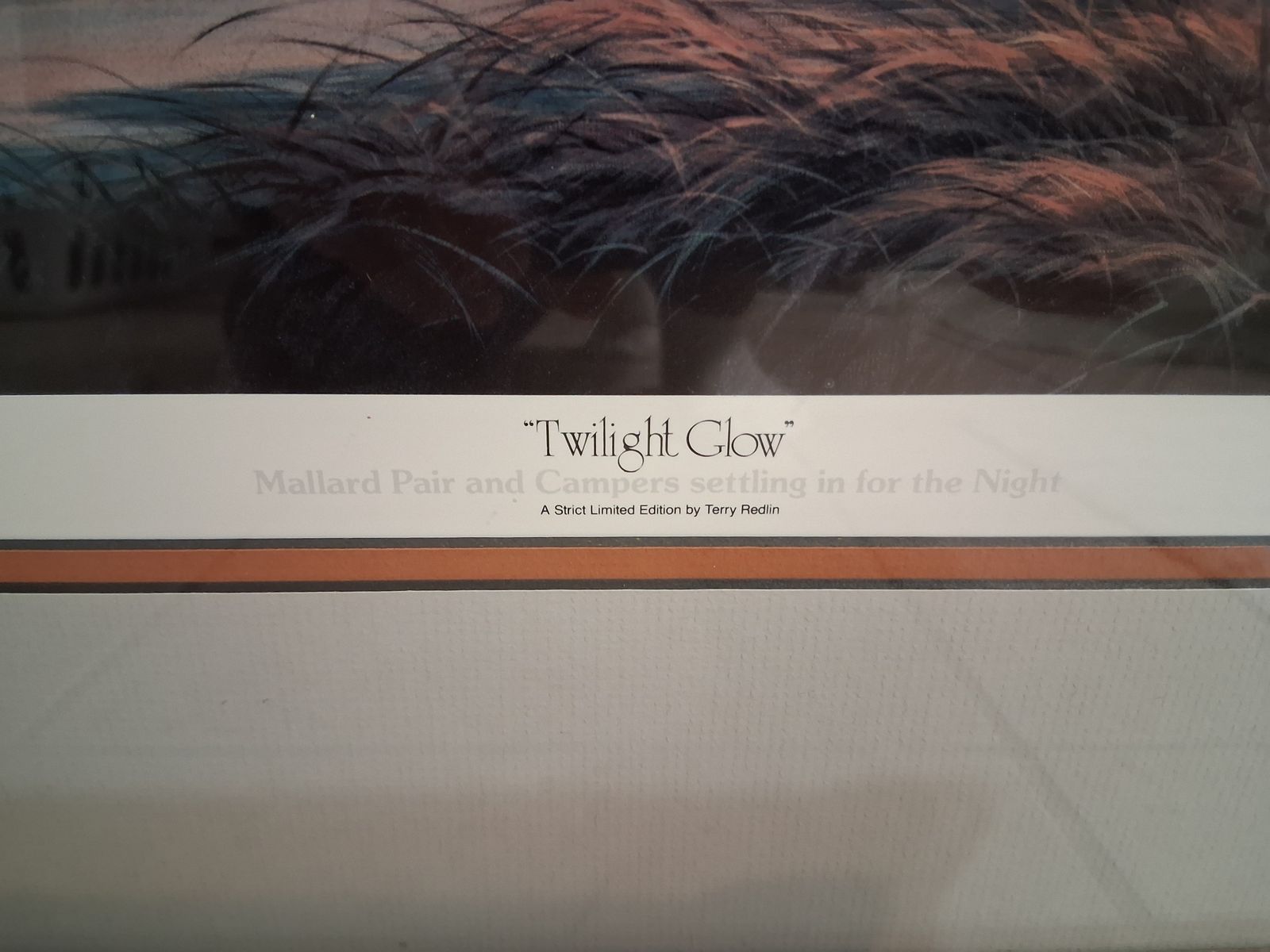 Beautiful framed signed and numbered Terry Redlin print from the 80's. Painting is named "Twilight Glow". Has COA. Is #382 out of 969. Great shape