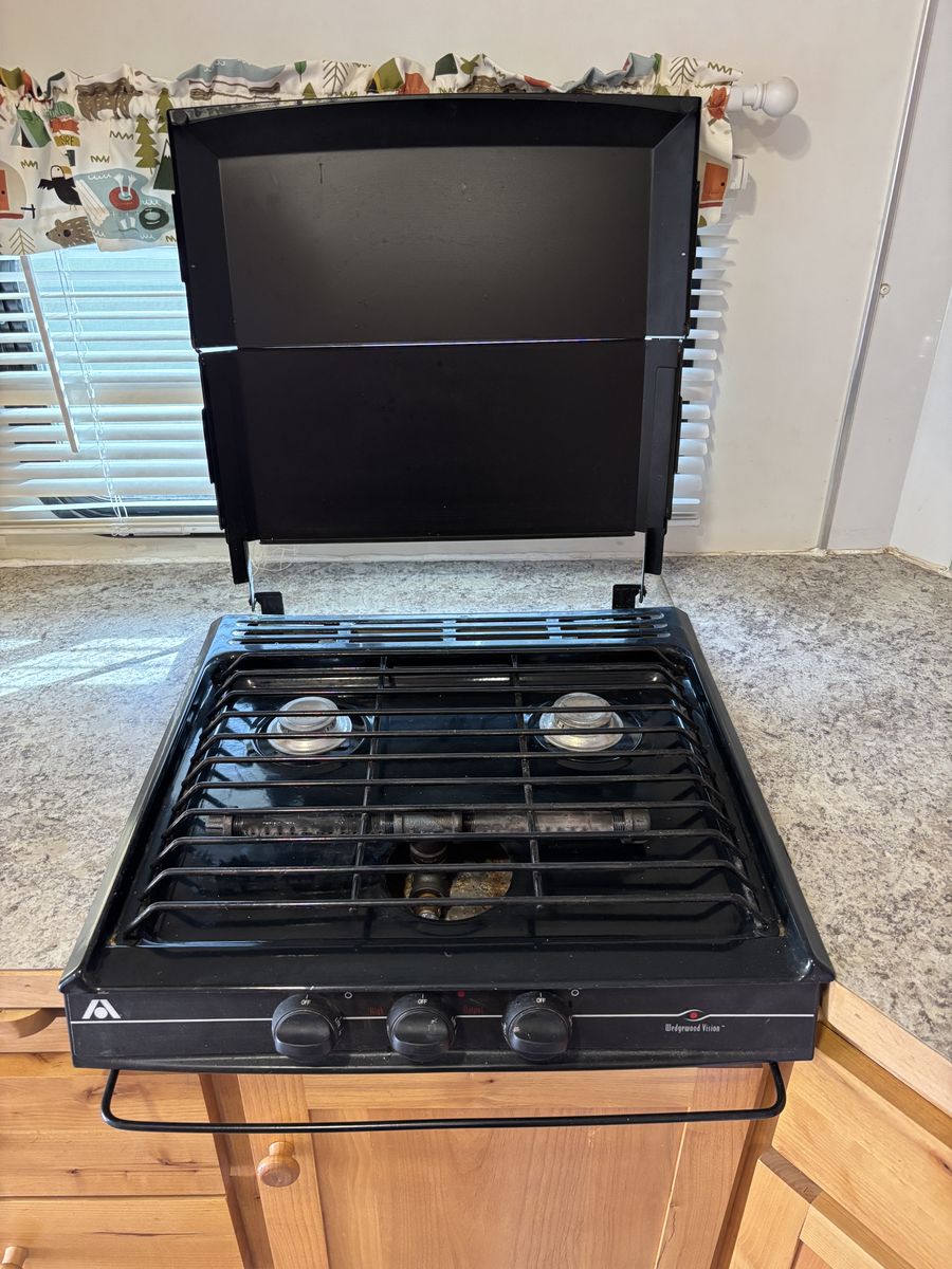 2019 model year, with two 5K axles for 10,000 pound towing capacity. Equipped with 150 W solar panel that keeps the battery charged. Bathroom has a tankless water heater for on demand. Hot showers. Brand new toilet. 50 gallon fresh water tank, 30 gallon gray, 19 gallon black. New batteries, two 6 V golf cart. New tires. Furnace works well. Everything works with no issues. There is a custom designed removable bug screen for both the side door and back door for optimal ventilation.