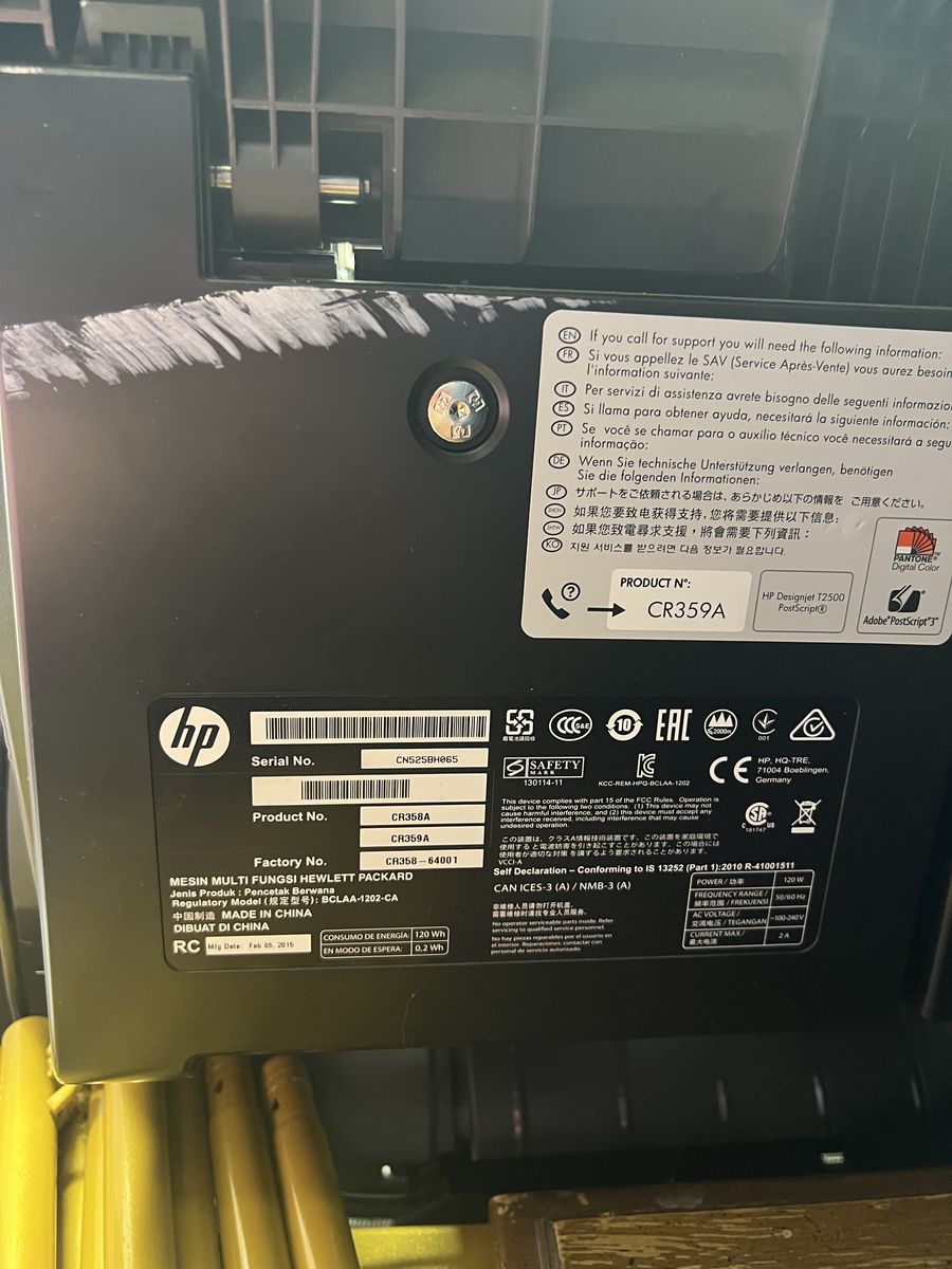My husband no longer uses this since closing his business. This printer can be used to print architectural plans, security/fire designs, advertising products or other large prints. Excellent condition. Asking $800 cash only. These sell for $4,000-$6,000 online but I would prefer to sell Locally. With the sale comes a couple rolls of paper, You will need to pick up and haul away. make an offer. The HP Designjet T2500 (CR359A) is a 36-inch, PostScript multifunction printerthat can print, scan, and copy. It features a 6-ink system, integrated output stacking tray, and two automatic front-loading roll feeds. It's designed for high-volume, advanced design studios needing to create, print, scan, and copy top-quality drawings efficiently. Key Specifications: \