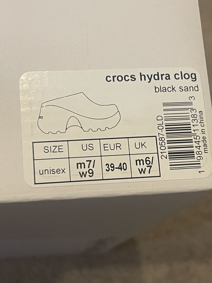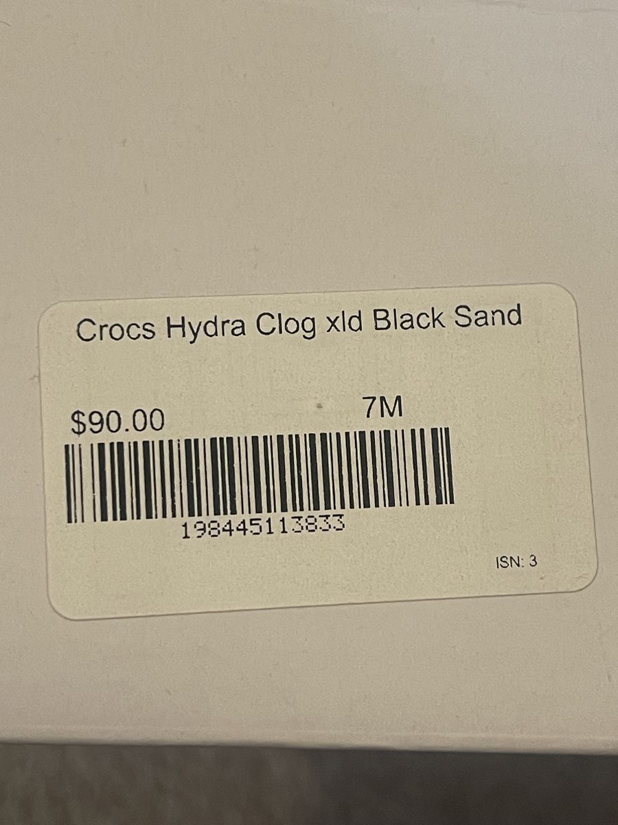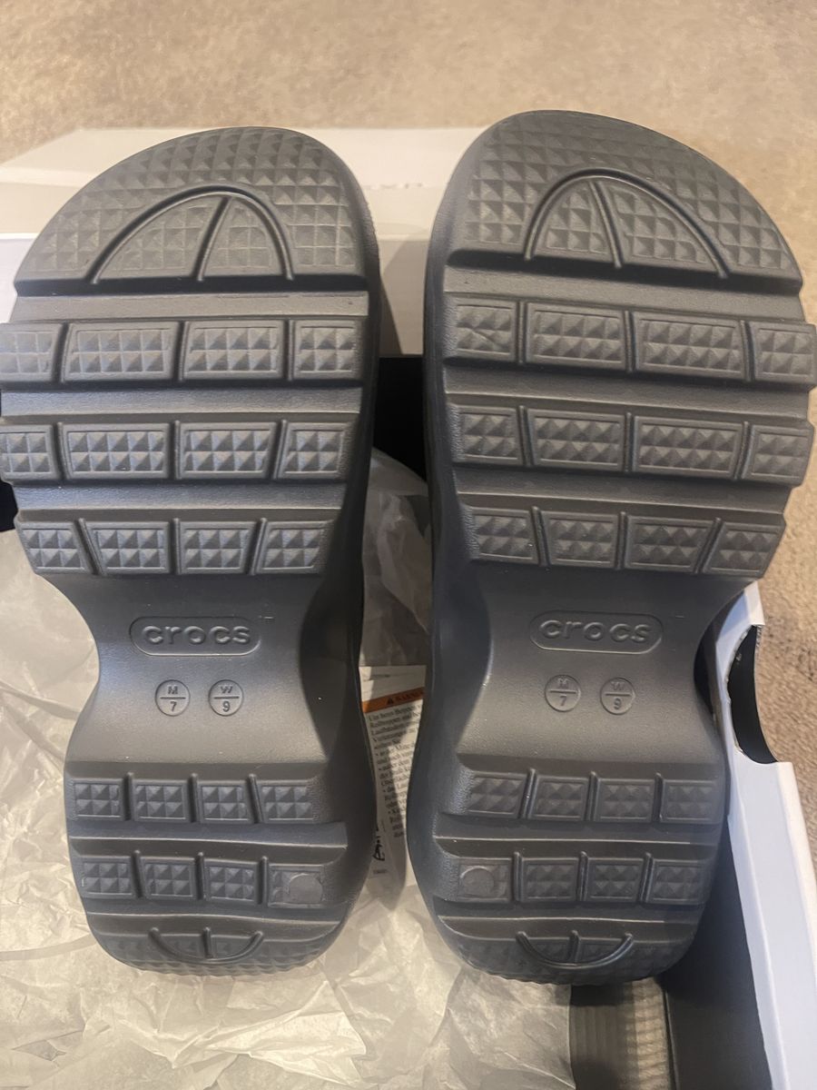 PayPalBrand New Croc Clogs. Bought as a gift and unknowingly order wrong size. Never worn. Color is Black Sand. Size is 7-Men / 9-Women. If you've worn crocs before, you know how incredible these are. If you haven't worn crocs before you're in for a real treat. I paid $90. At $50 these are sure to go fast.