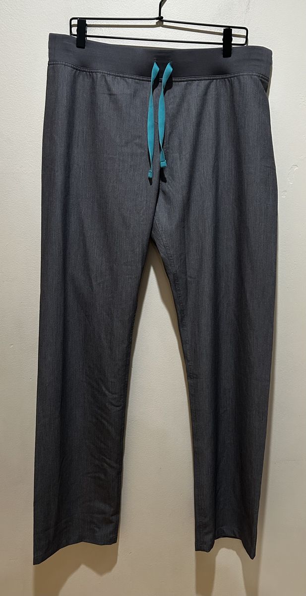Figs Technical Collection High Waisted Livingston Basic Gray Scrubs Pants - Women’s Size Large - with back pockets and elastic waistband with waist tie - color po 1735 - style # T21003T - great condition - pre-owned.