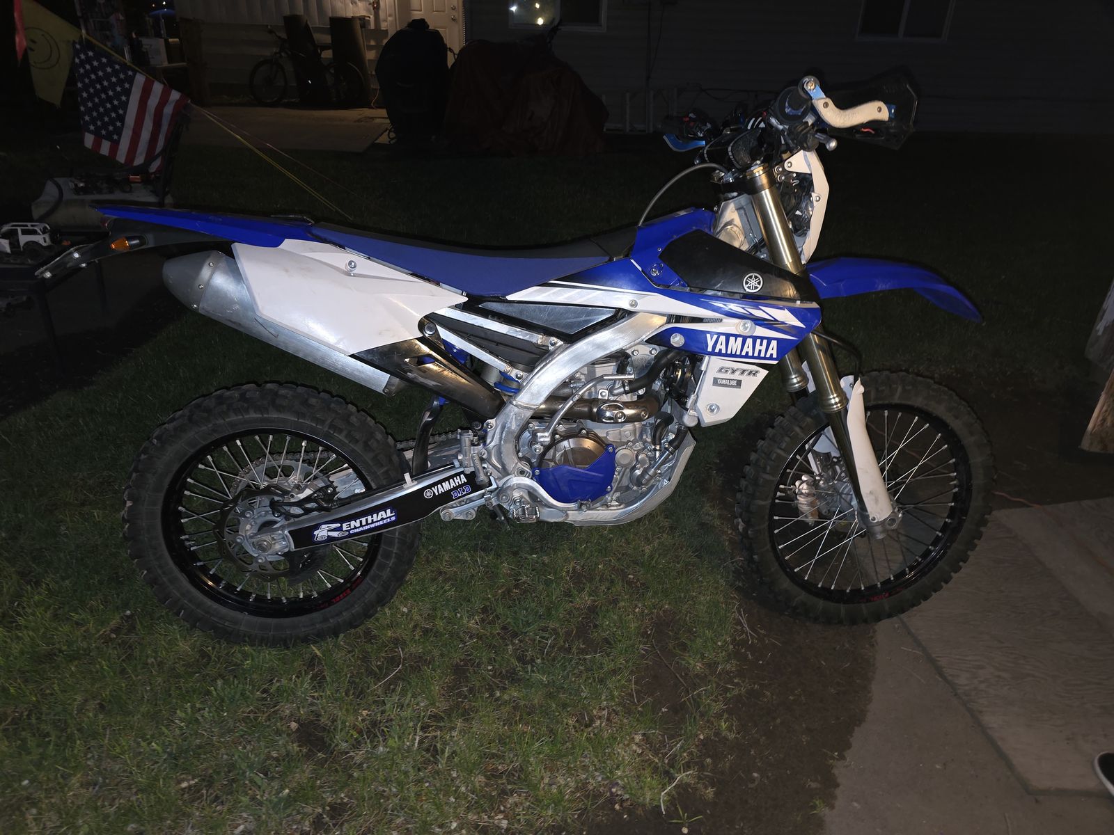 Bought this clean very fast!! 2017 Yamaha Wr450 last spring. Features a digital tuner, electric start, a fully street leagal kit already installed. Fmf exhaust, Brand new back tire. After market grips and guards and more! I rode it once and am looking for something more so that fits my age. I'm the 3rd owner, the first worked for the dealer and didnt have it long as he traded it for the new model the next year. The guy I bought it from had it for a few years and didn't ride it much and wanted to sell it. The front forks have been completely redone all seals. The bike runs great with low hours. Comes with a box of extra sprockets, spark plugs and oil, chain and miscellaneous items. I bought a brand new dunlop back tire when I got it and it has 1 short ride on it. Really needing to sell this bike. I bought a brand new pair of alpine star tech 7 boots (white and black size 12 worn once) that ill throw in for free. If interested please call for more info!!!! Come check it out and take it for a rip!