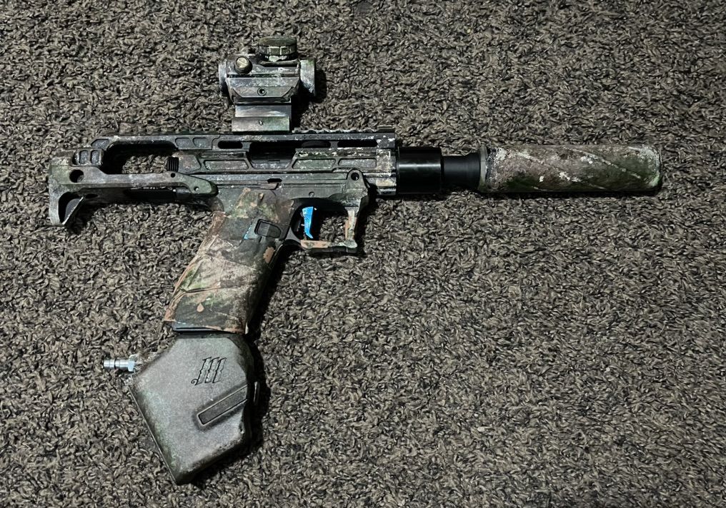 VenmoAAP-01 carbine kit Indoor / outdoor speedsoft setup Is taped and painted the paint I use rubs off really easy