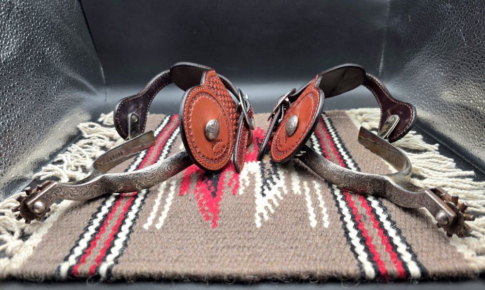 VenmoAnother beautiful set of vintage spurs for sale! E. Garcia truly never fails to disappoint with his craftsmanship. The sterling overlay on this set is tooled very nicely, and has a set of brand new spur straps to accent the beauty. These spur straps are actually from the Garcia store in Elko Nevada! Both spurs and spur straps are stamped/marked.