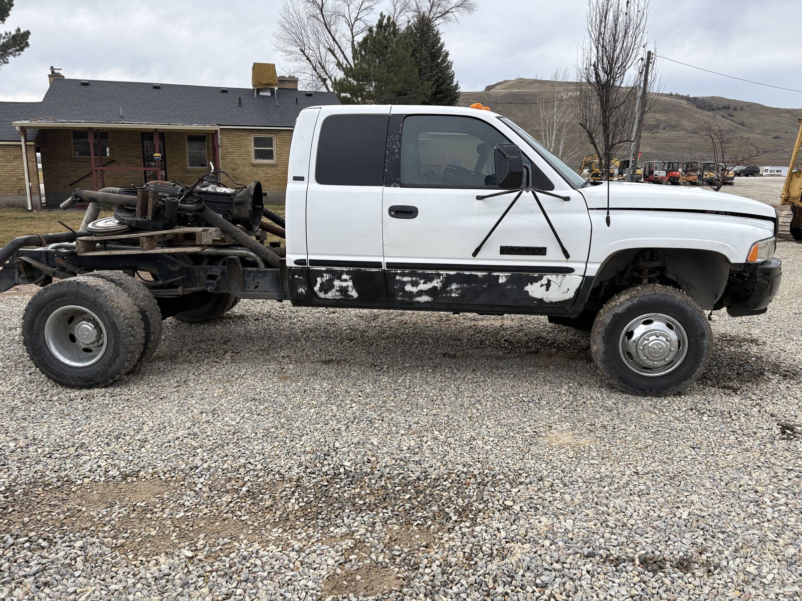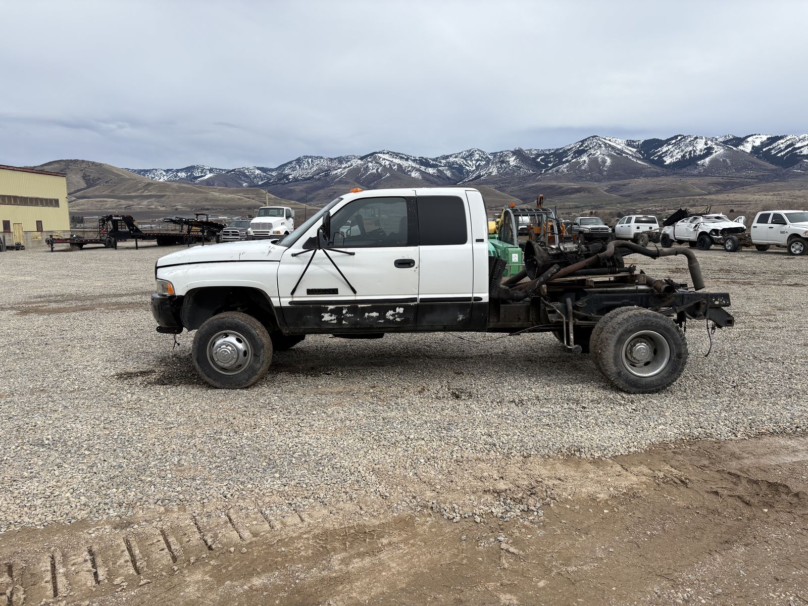 1998.5 dodge, rare half year truck that had 4 doors and 12 cage Cummins motor. This used to be a Dodge Cummins pick up with a 5 Speed manual transmission. The drivetrain has all been removed so there is no engine transmission transfer case or drivelines included in the sale.