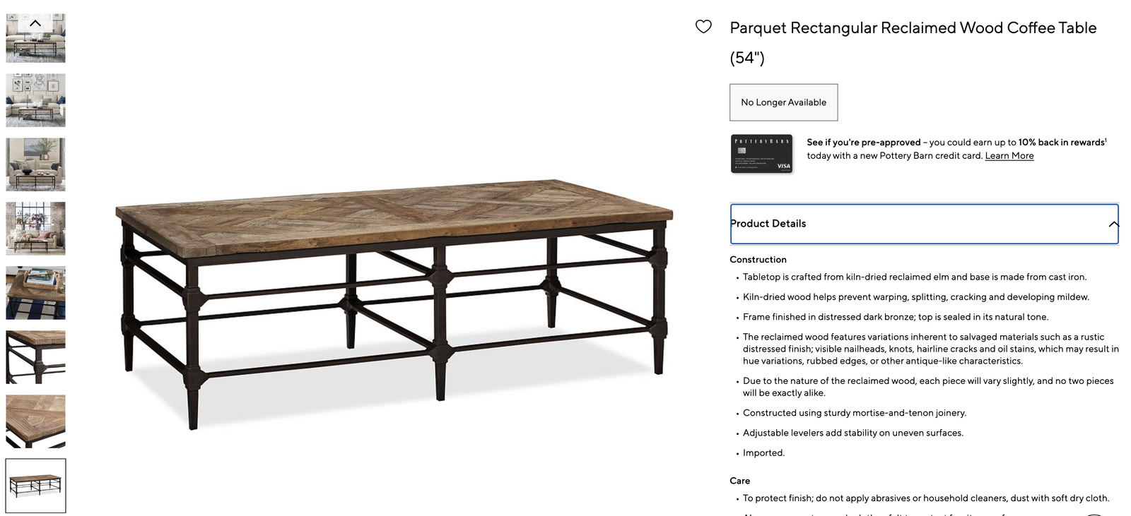 This table originally retailed for $1,200 and is no longer available from Pottery Barn. Made with reclaimed wood and a heavy cast iron frame, so it's extremely sturdy and high quality.