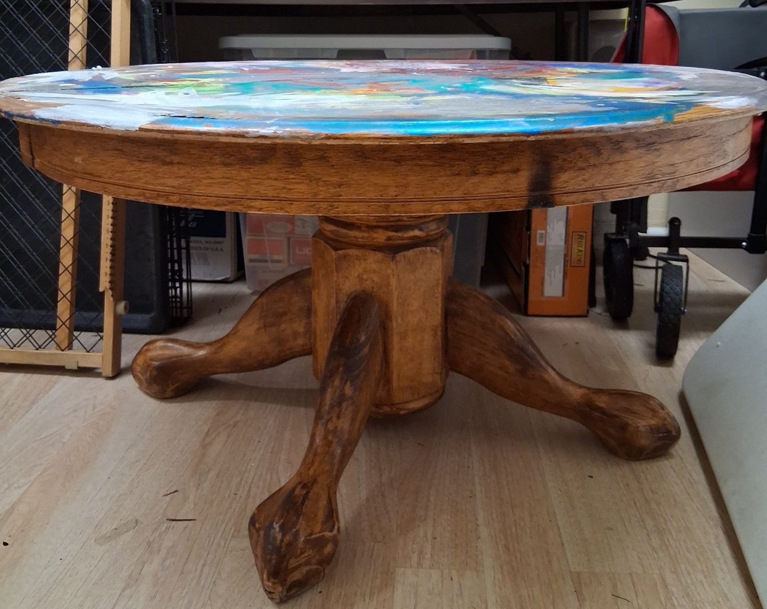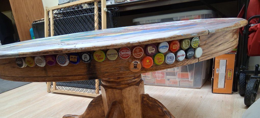 PayPal41.5 in diameter, 22 in tall. we don't need this anymore. It has a bottle cap collection on it, creative artwork and is signed by the artist which you may enjoy or you may want to change.