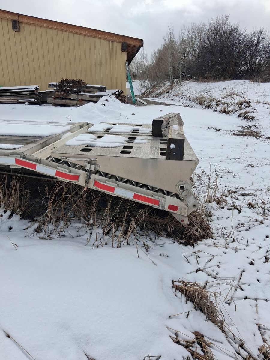 VenmoLightly used aluminum equipment trailer. 30foot deck with 5foot 50/50 mega ramps. Empty wt. 6,700#, payload wt. 18,300#, GVWR 25,000#. Spare. Side access steps demountable.