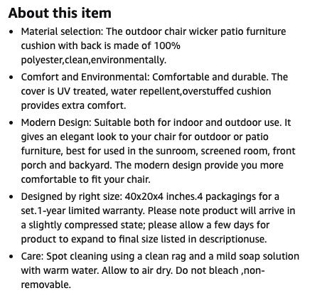 VenmoGET READY FOR SUMMER ENTERTAINING WITH BRAND NEW--OUTDOOR CHAIR CUSHIONS by ArtPlan, get yours now at these deeply discounted prices! One set of 4 cushions for $100, or a set of 2 for $60. Amazon price is $190 for 4 cushions.