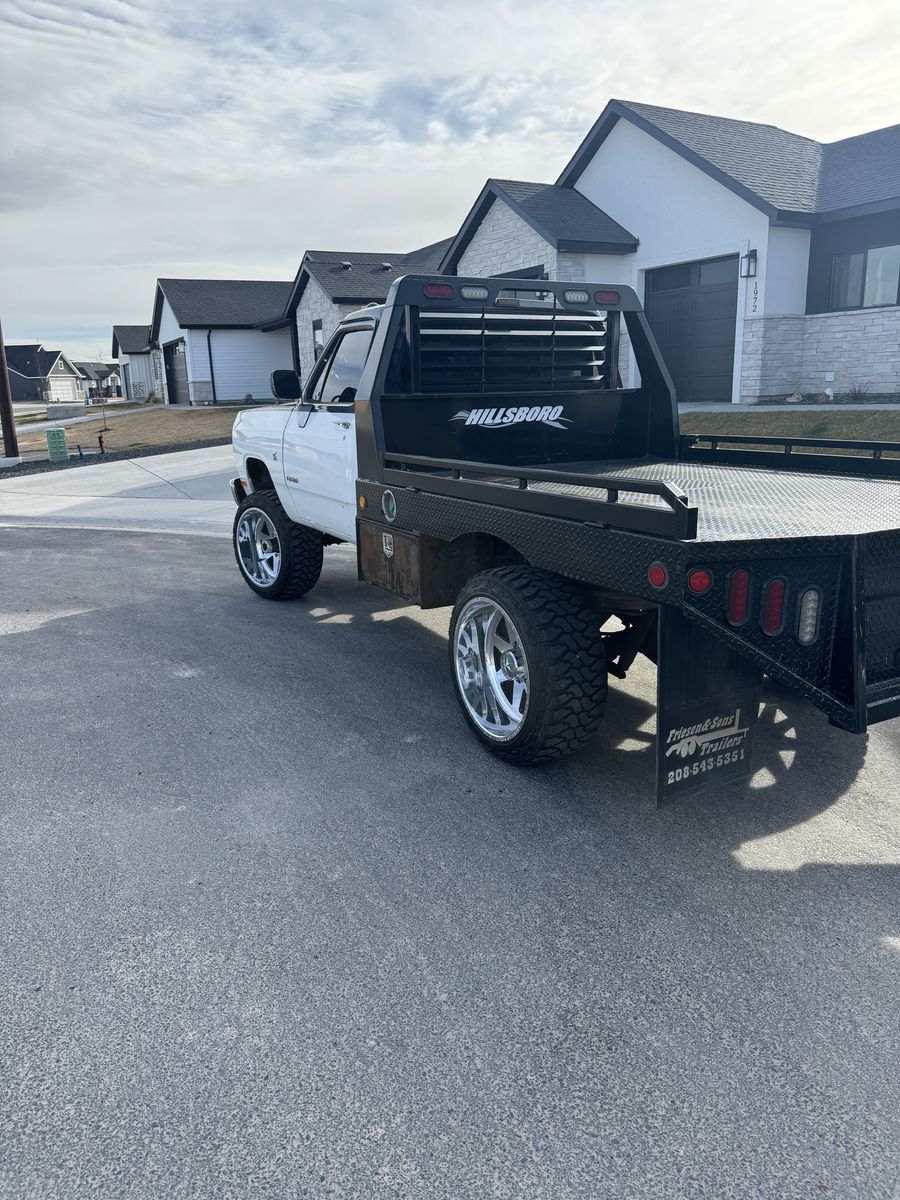 Pickup runs and drives great, starts amazing in the cold. Heater works great could use a recharge on the AC this summer. Truck is a real head turner with the custom two town paint job. I've been averaging 22-23mpg in town and out on the open road empty under 80mph it's got as high as 26.7 mph. Pickup does have a little surface rust (34 year old pickup) The paint is fading on the hood. I have over $35k into this truck. I hate to see it go but have since bought a four door for the family and this is just setting. I'm asking $25,000 and am pretty firm on price unless someone wants to bring their own wheels and tires then we can talk. No trades please, feel free to reach out if you would like more pictures or videos of the pickup. a lot of bang for the buck. Thanks for looking