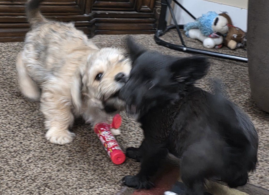 Our family dog had four sweet puppies and we're looking for forever homes. Mom is a mini schnauzer and dad is a toy poodle. They're happy healthy and full of personality. Schnoodles are designer crossbreed between a Schnauzer and a Poodle, known for being an intelligent, affectionate, and cheerful companion. They are hypoallergenic, making them popular family pets that come in various sizes (Toy poodle Miniature schnauzer). They are highly energetic, trainable, and known for their "teddy bear" appearance with curly or wavy coats.
