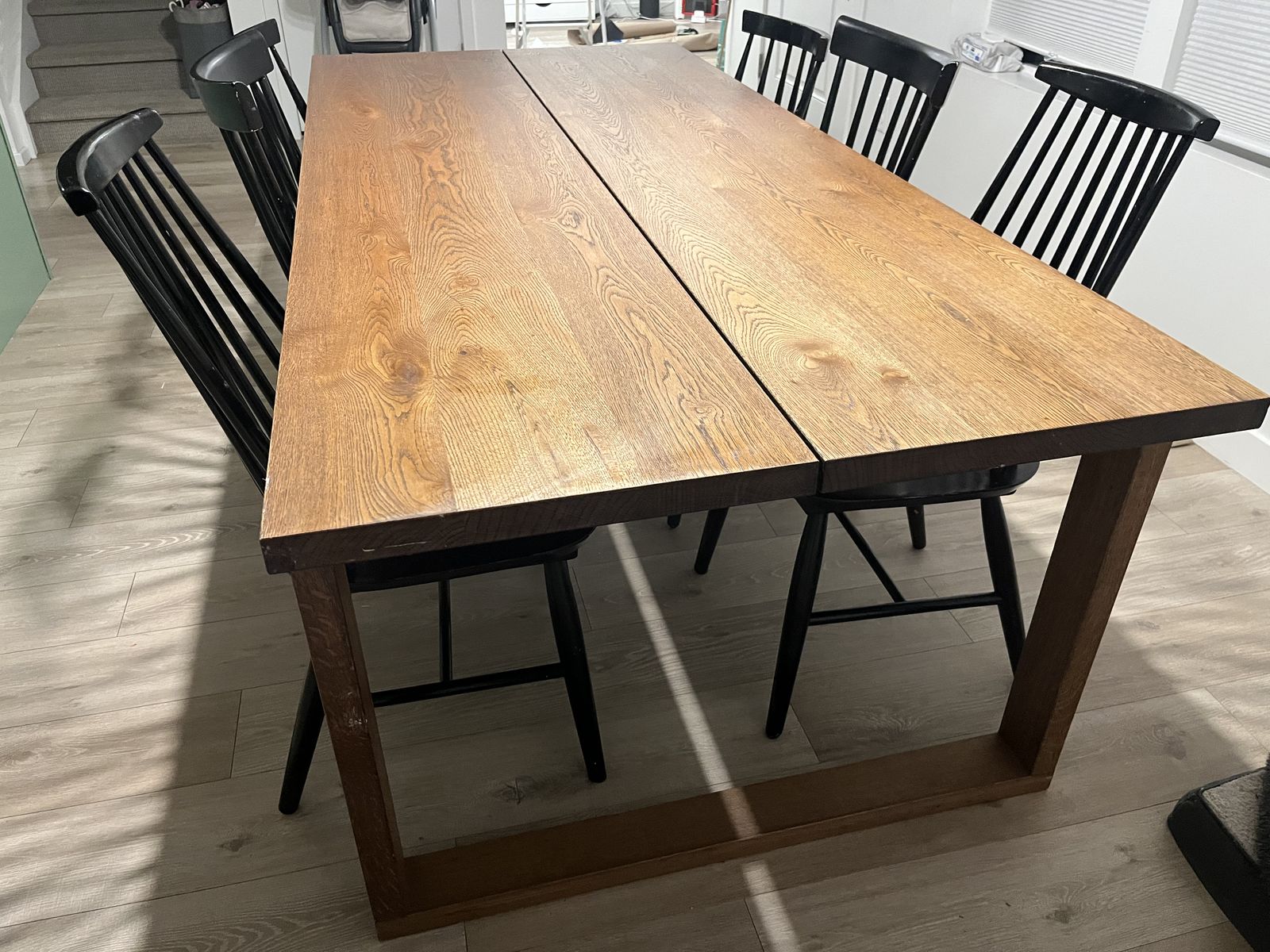 Solid oak Comes apart into 4 pieces for transport Chairs not included $225.00 OBO