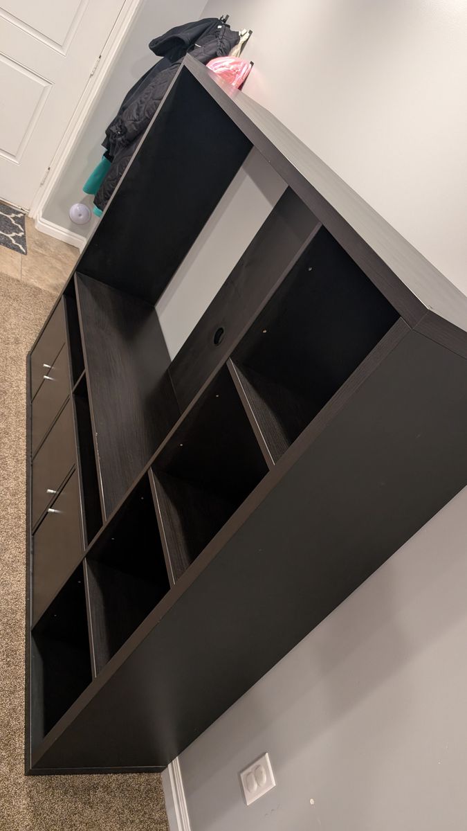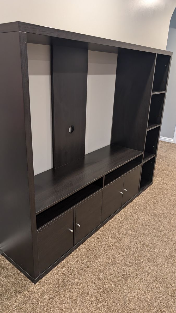 Black-Brown entertainment center. There are a few minor scratches. The cupboards all have a child lock on them that can be disabled, or removed. Structurally, in very good shape. Selling because we are moving and won’t need this anymore. Local pickup in Davis County. Cash only.