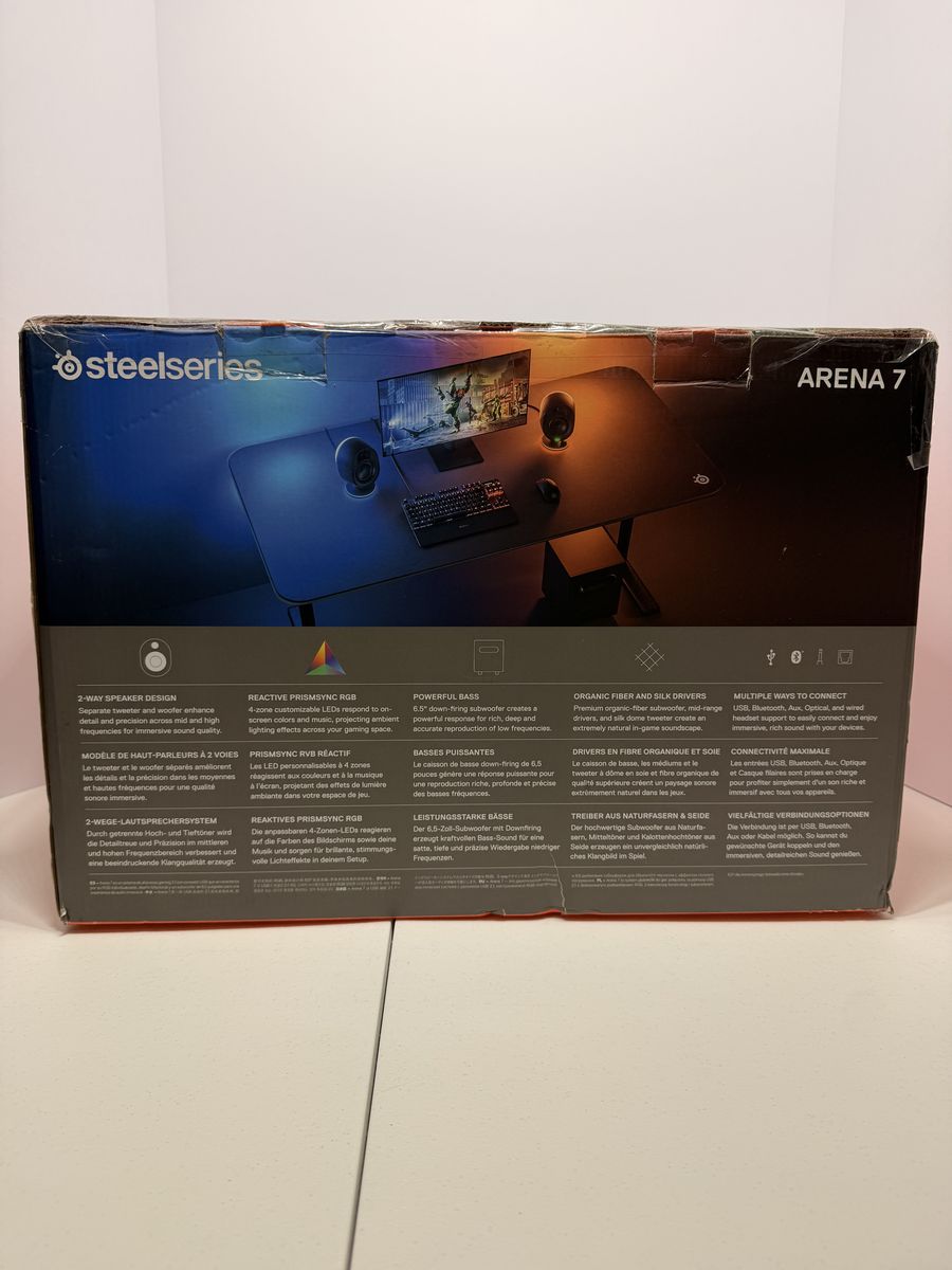 ApplePayKey Features and Performance Audio Quality: The system uses organic fiber woofers and silk dome tweeters for clear, detailed sound, while the 6.5-inch downward-firing subwoofer delivers deep bass for, gaming, music, and movies. RGB Lighting: Features 4-zone reactive PrismSync RGB lighting that can synchronize with on-screen actions and music. Connectivity: Supports USB, Bluetooth, optical, and 3.5mm Aux input. Customization: Users can tune the sound via the SteelSeries Sonar software, which features a 10-band Parametric EQ and spatial audio. Controls: The right speaker includes a volume dial and a multi-functional button for muting, headset toggling, and Bluetooth pairing.