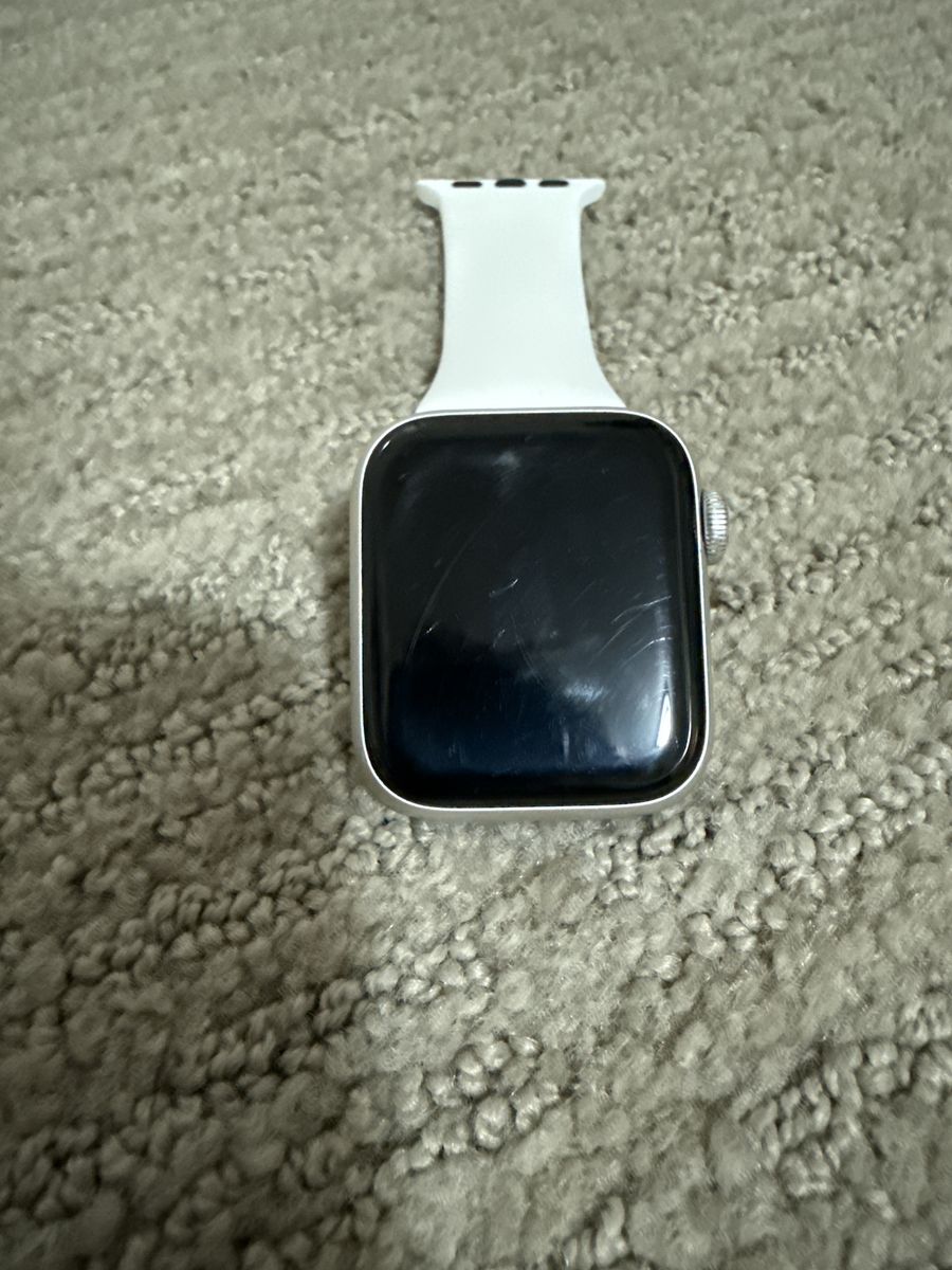 This is a really good condition. Nice looking Apple Watch SE with cellular and it is 40 mm. It also is aluminum and ceramic Case ion X Glass GPS LTEWR – 50 m and it is a good Apple Watch but it has a little scratches but the band looks really nice and it looks really nice and works well and it comes with the charger and a charging cube all Apple factory.