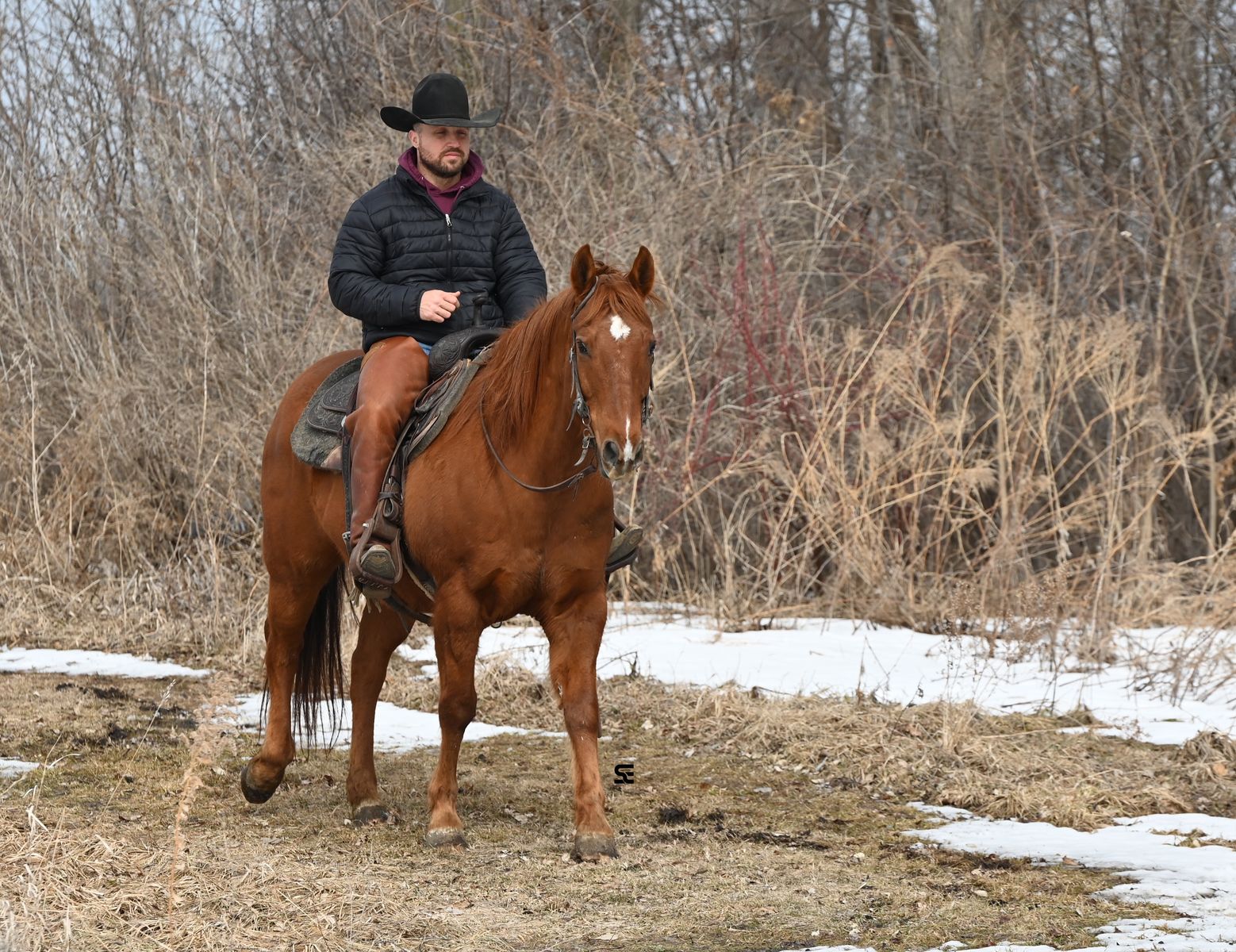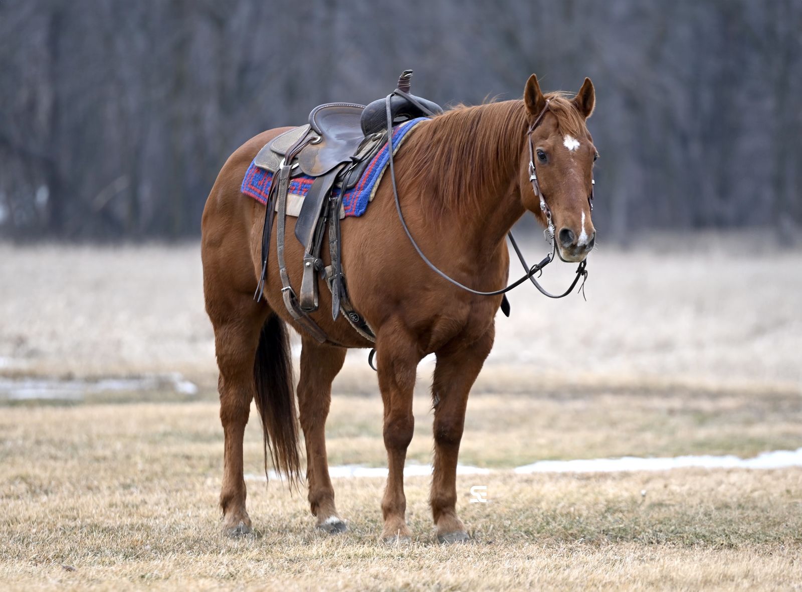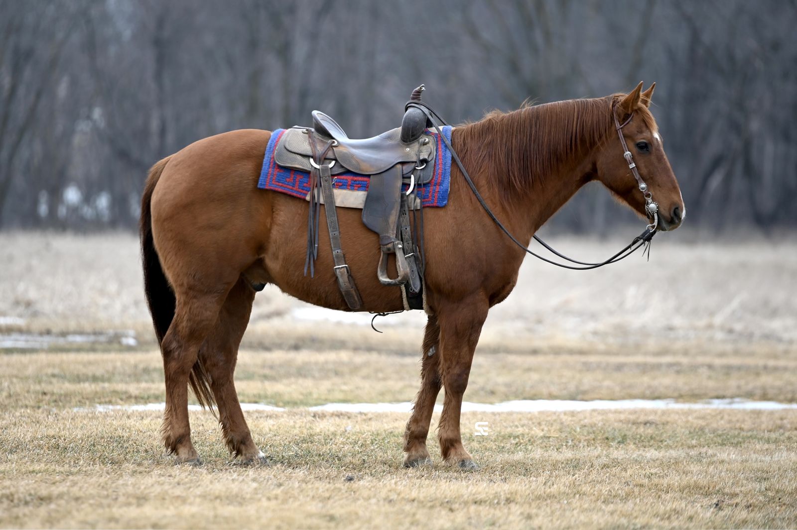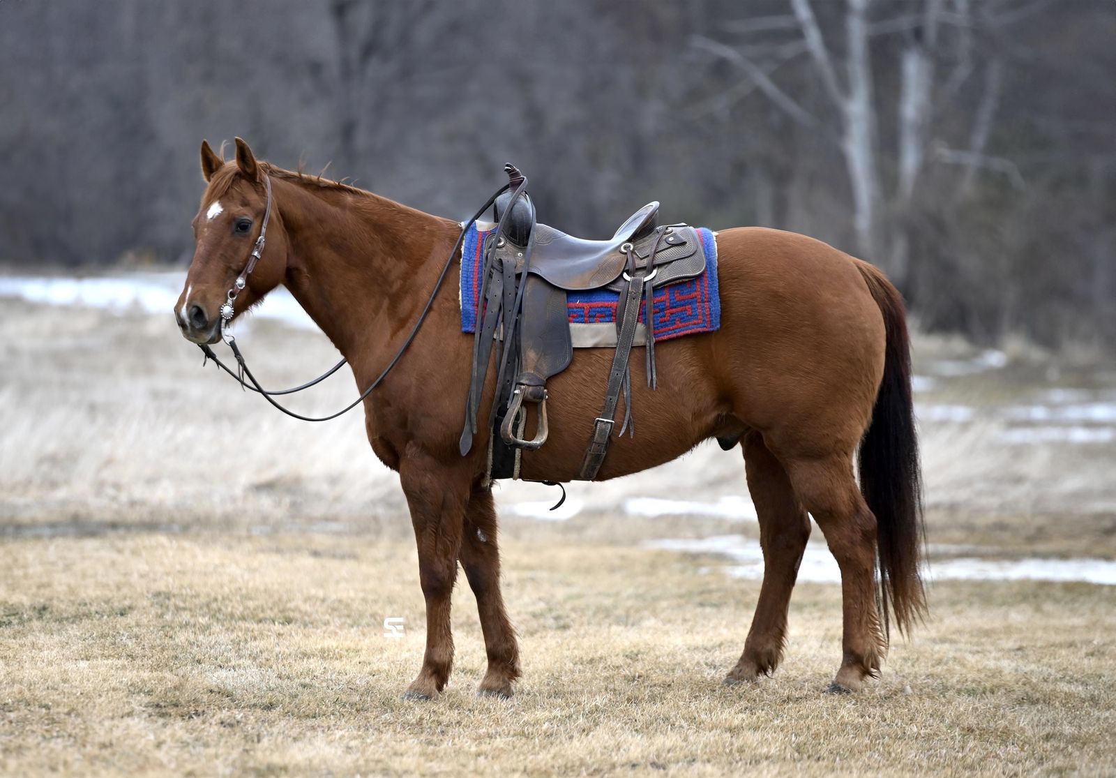 In his previous life Francis was used as a ranch and mountain trail horse, so he has seen plenty of country and knows what a dayโs work looks like. Since then he has been an everyday riding horse for us and continues to prove just how dependable he is. He is well exposed and doesnโt bat an eye at much. Tarps, commotion, and everyday activity around the barn are no problem for him. He takes things in stride and keeps the same steady attitude every time you saddle him up.