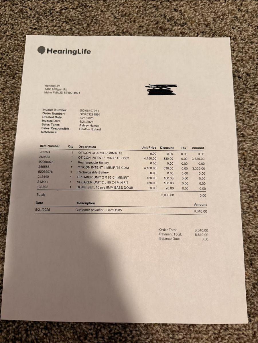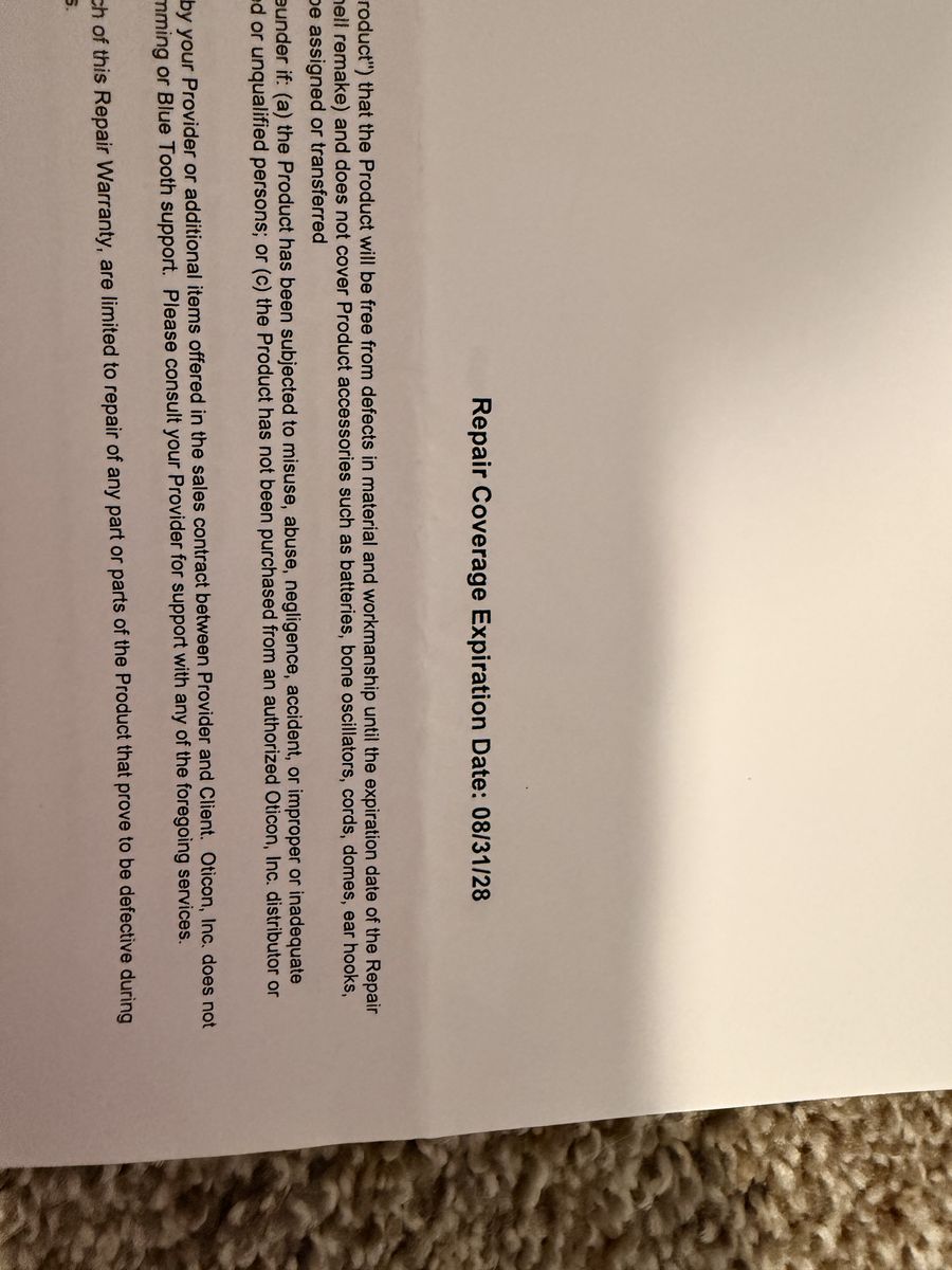 Details: • Oticon Intent 1 (top-of-the-line model) • Only worn a handful of times • Rechargeable • Bluetooth compatible (connects to phone, TV, etc.) • Includes charging case and original accessories • Can be reprogrammed by an audiologist to match the new owner’s hearing needs • Warranty through August 2028